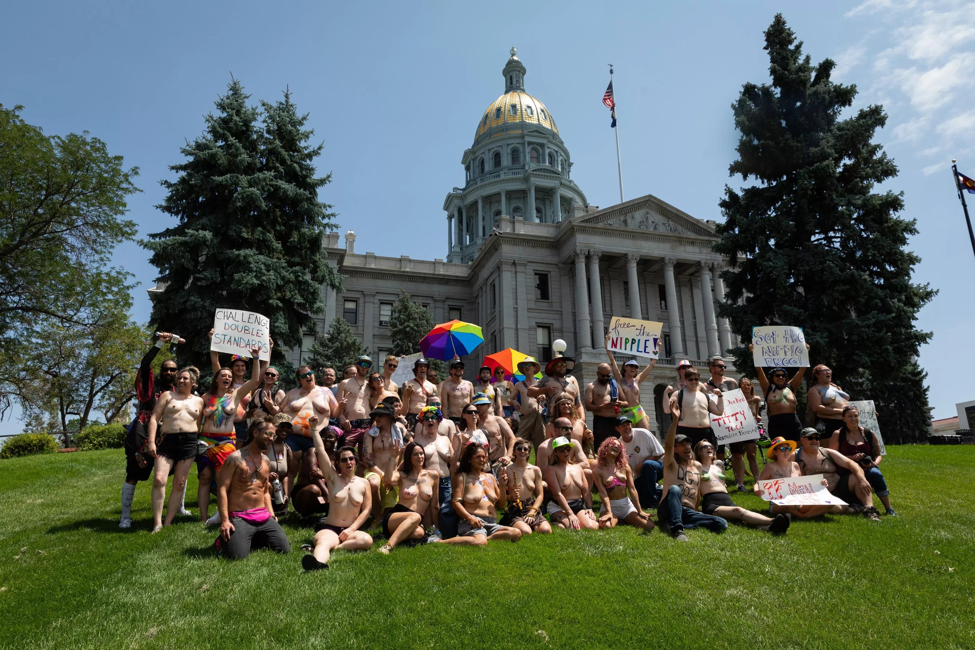 Law in Denver states that naked breasts are allowed to be shown in public, as long as they are not presented in a sexual context. But although the law is clear in what is allowed, that doesn’t necessarily correlate to societal acceptance, says Heather Newhouse, a participant in the march.