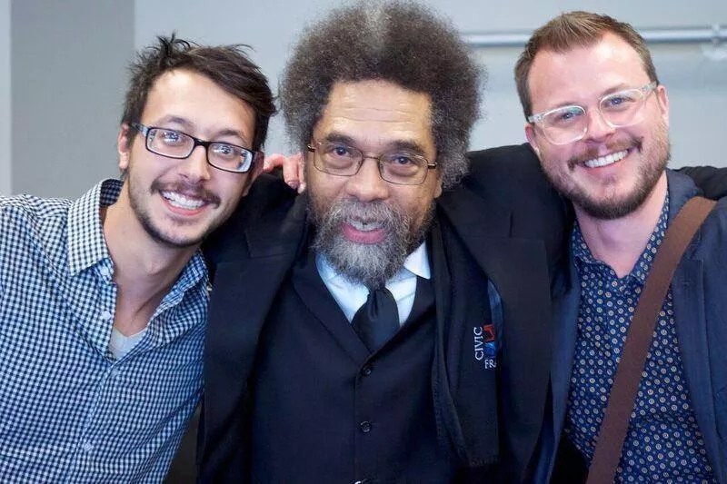 Adam Graves (right) hanging out with D-phi speaker Cornel West and D-phi project coordinator Gabriel Grinsteiner.
