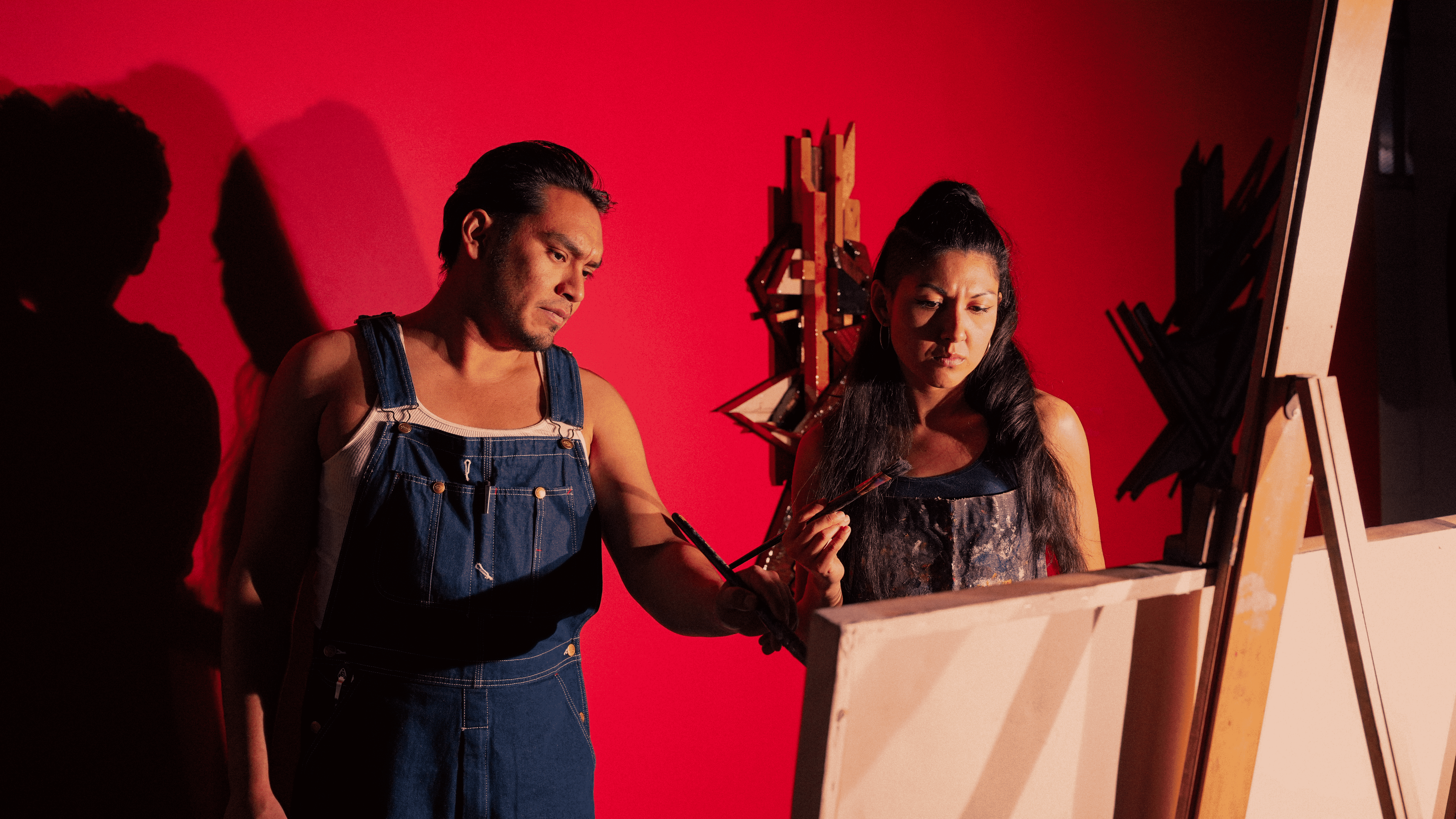 He was inspired by Arthur Miller’s Death of a Salesman, which examines a man trying to find his identity while struggling with poverty; John Logan’s two-person play Red, about artist Mark Rothko; and Jack White of the White Stripes. The play depicts Cheyanne and Rodrigo’s personal struggles as they balance their artistic ambitions with the demands of caring for an aging parent. Ortega, who plays Rodrigo, describes his character as navigating the art world’s precarious dynamics, using his creativity to overcome personal and professional obstacles.