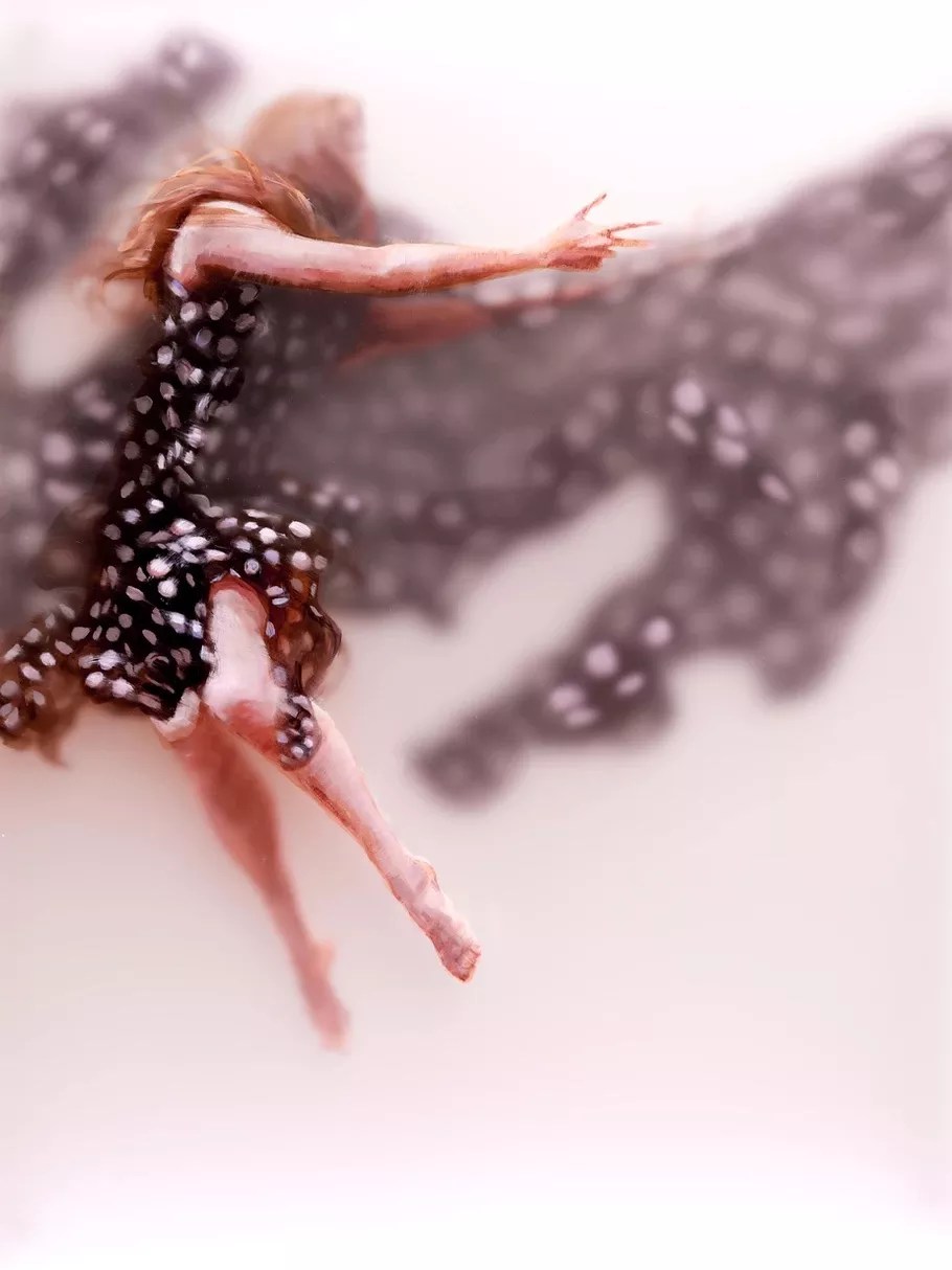 Michelle Jader’s process begins with a series of photographs, which are then layered in separate acrylic sheets, triggering an otherworldly, sensory impression of movement, as if the subjects were swirling through the mists.