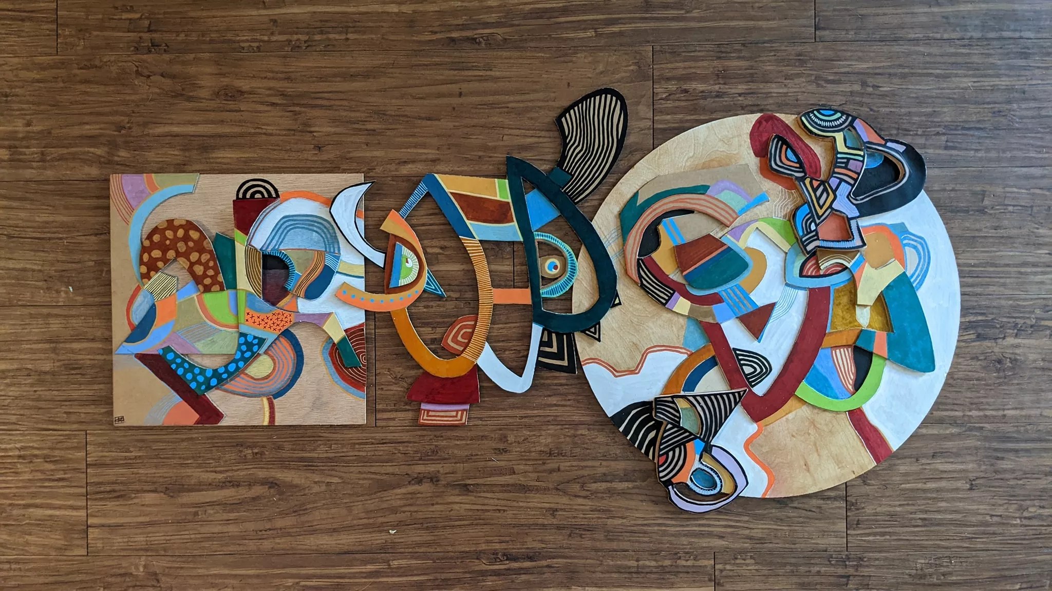 Lois R. Lupica and Chad Henry, Etudes Dan Drossman, “We Must Keep Betraying Our Ghosts, mixed media on wood.” Dan Drossman