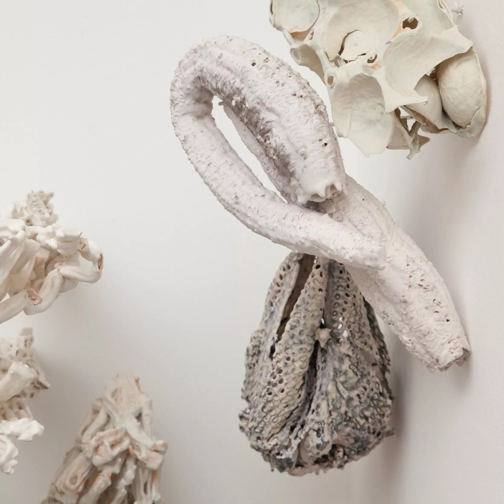 © Martha Russo, “Lightness of Being” (detail), porcelain slip, quotidian objects, glaze, metal rods, epoxy.