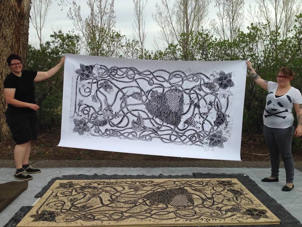 In Bloom Meet the Artists Night A steamroller print, fresh off the press. Courtesy of RMCAD