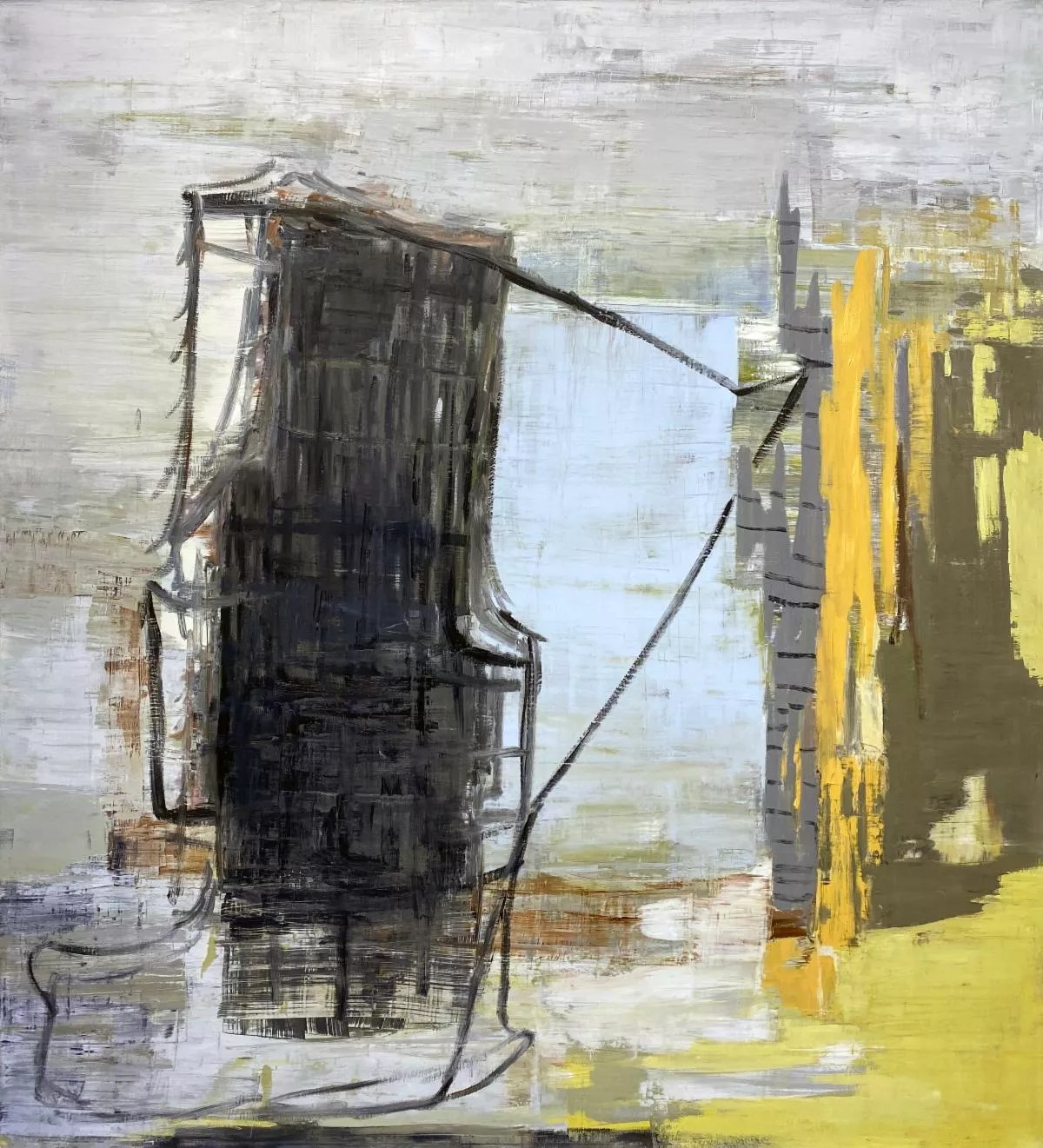 Yes, COVID-19 lurks in this show, too, where Alex Paozols’s large oils depict images lifted from the movies of women using old-fashioned telephones to drive home the idea of a landline as the overarching metaphor.