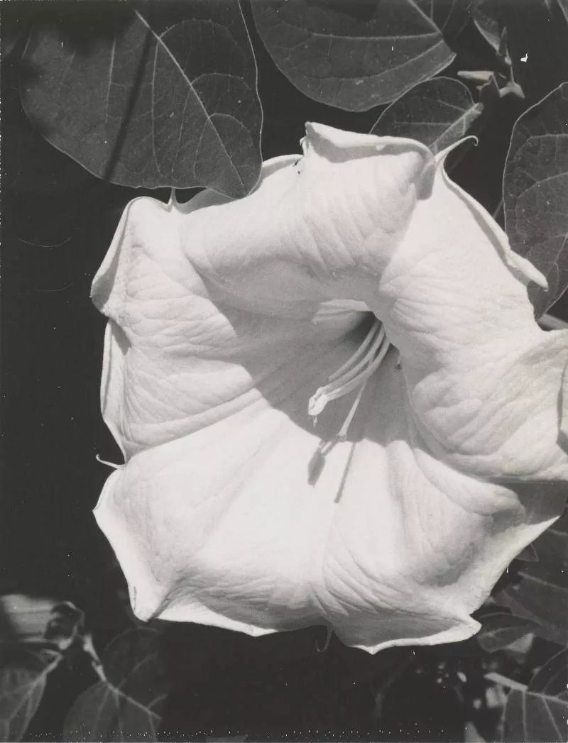 Georgia O’Keeffe, “Jimsonweed (Datura stramonium),” 1964–68, black-and-white Polaroid.
