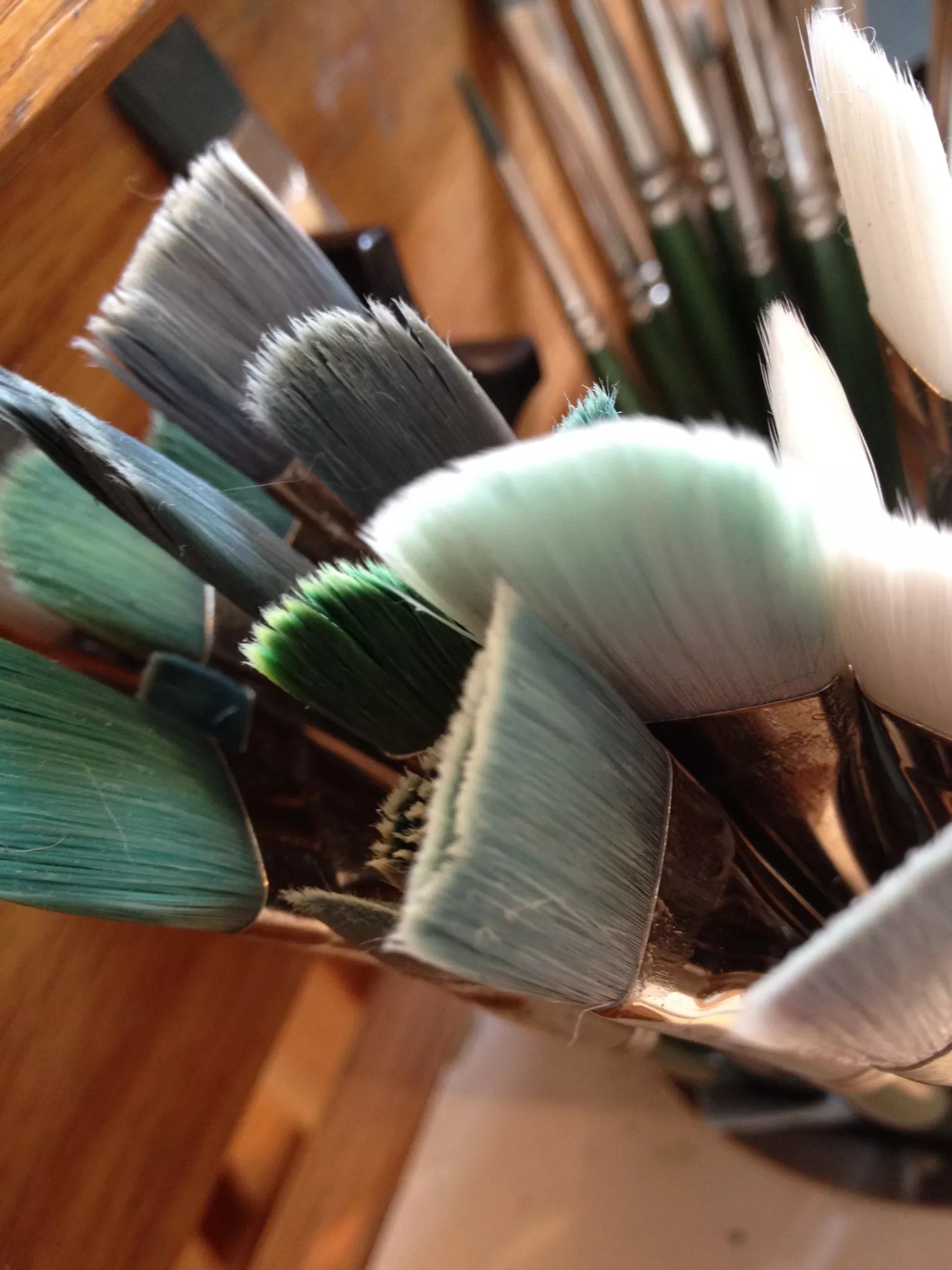Mai Wyn Schantz’s paintbrushes: expensive tools of the trade.