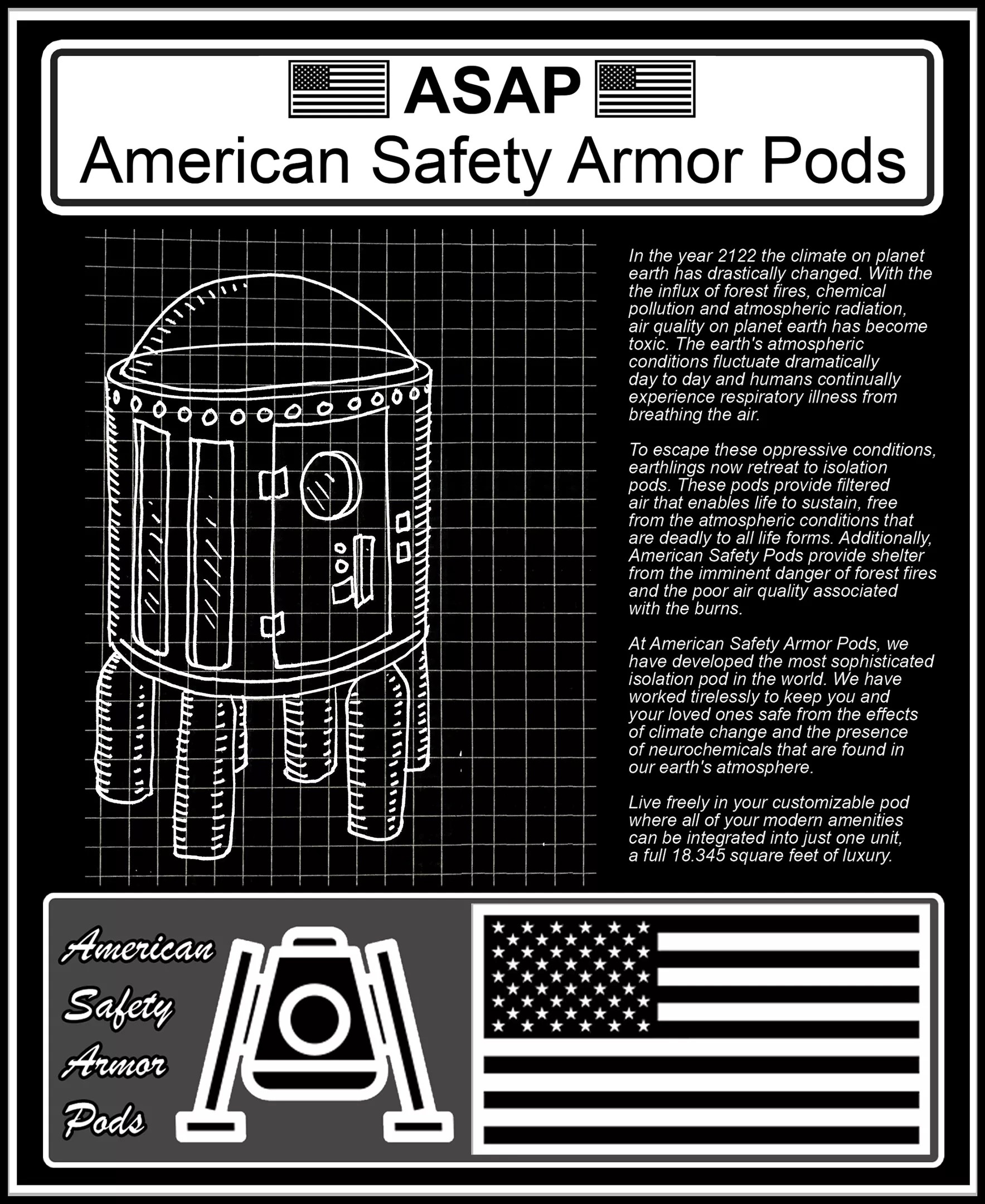 “It’s this fire pod that he visualizes people 100 years from now having to have on their property to take shelter, and when there’s a massive climate collapse event,” Phillips explains.