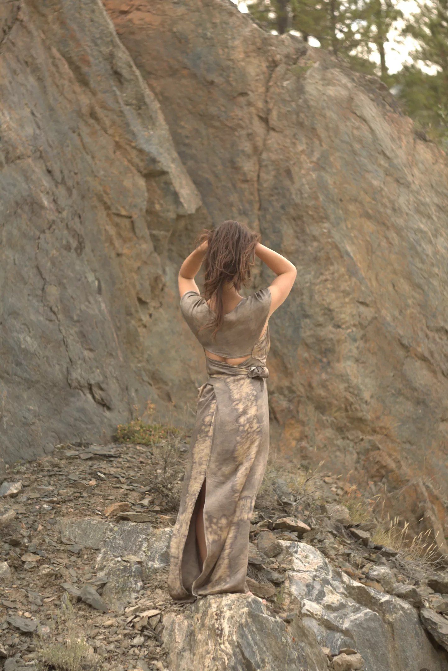 Fashion designer and slow-fashion activist Baily Rose grew up in the Colorado Rockies, a background that infuses her loose, sensual, ecological and ethical styles, which she handcrafts and often models herself against stunning mountain scenery.