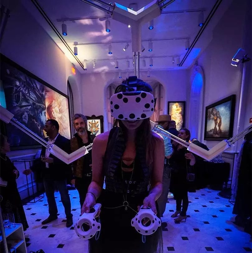 A participant enters the world of Microdose VR at the Smithsonian American Art Museum and the Renwick Gallery.