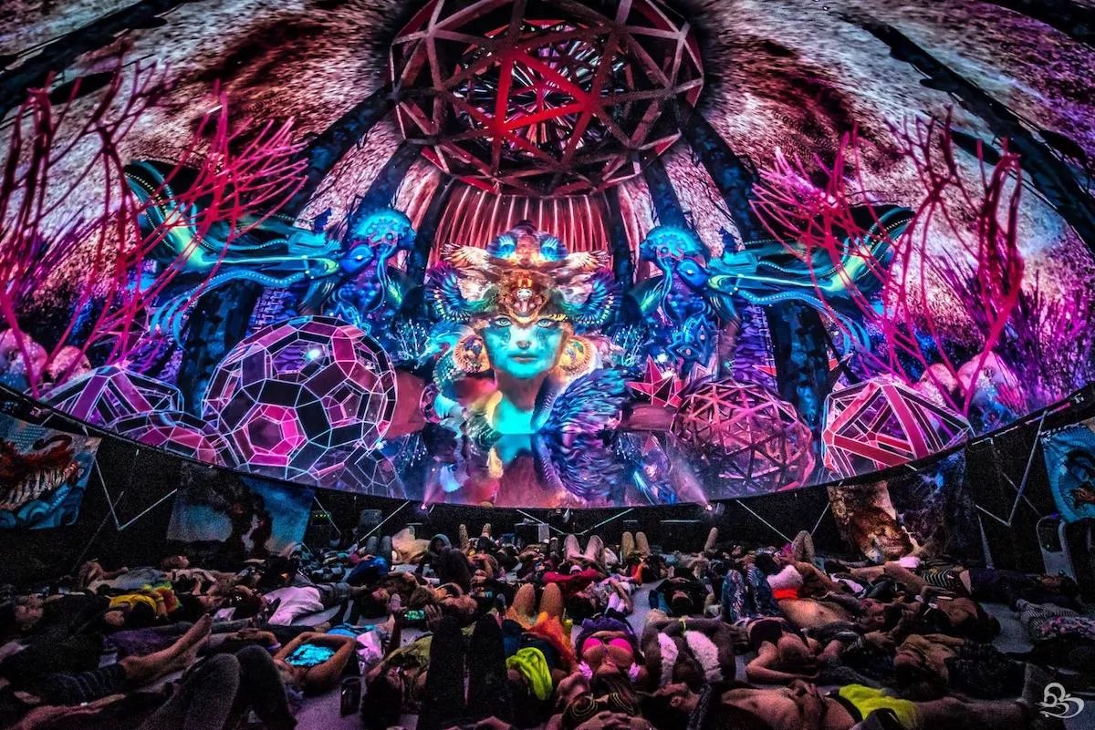 An audience entranced by Android Jones's Samskara Returns!