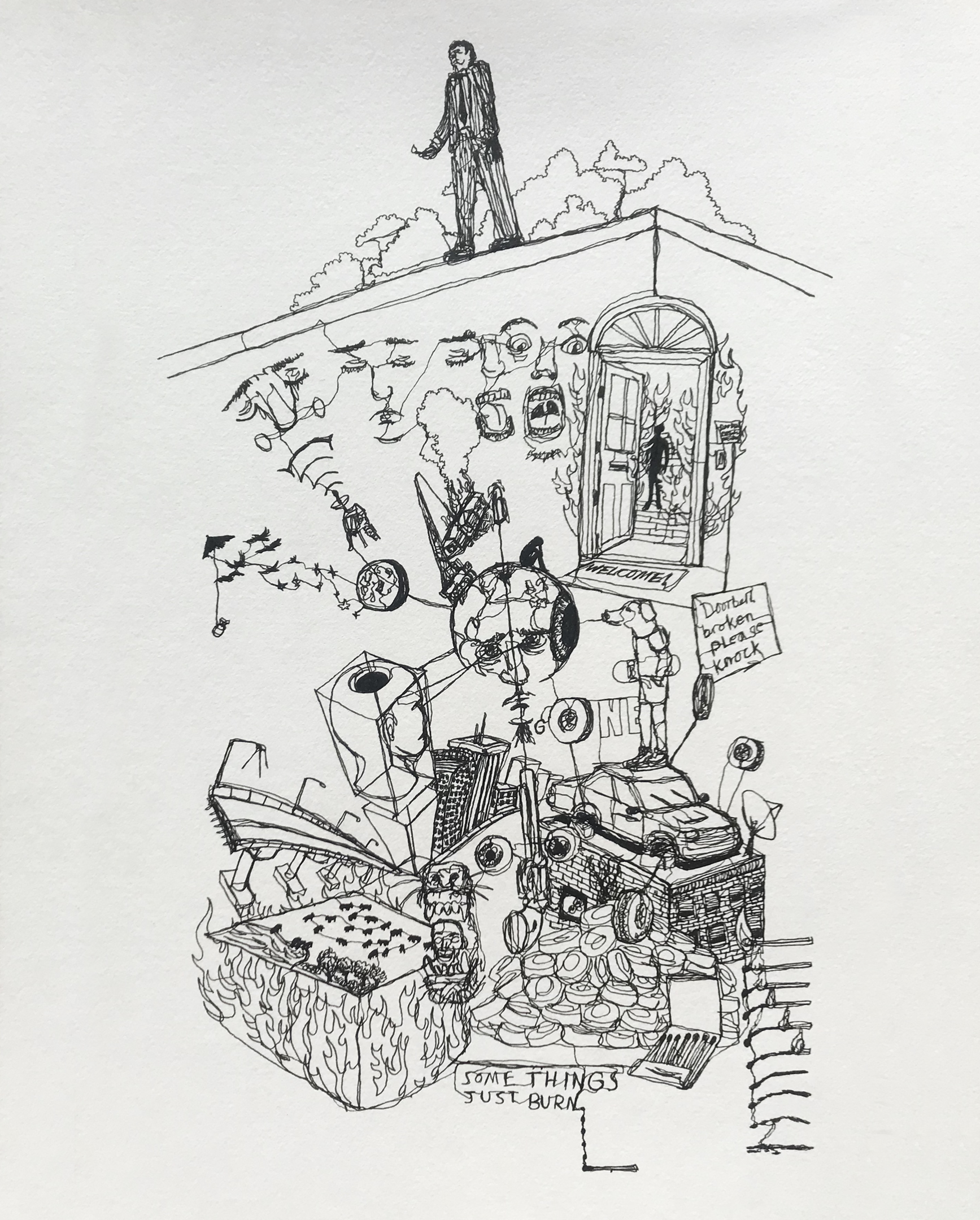 “I was rejecting every idea I had because I kept thinking I could come up with something better,” he says. “I ended up not making anything for a month, and it was just awful, and then to get everything out of my head, I was like, ‘I’ll just do this kind of brain dump and do the opposite of what I’ve been doing, not plan anything out, not come up with the best idea, not try to impress people, and actually just put down on the paper what’s on my mind, completely honestly, and without lifting the pen.'”