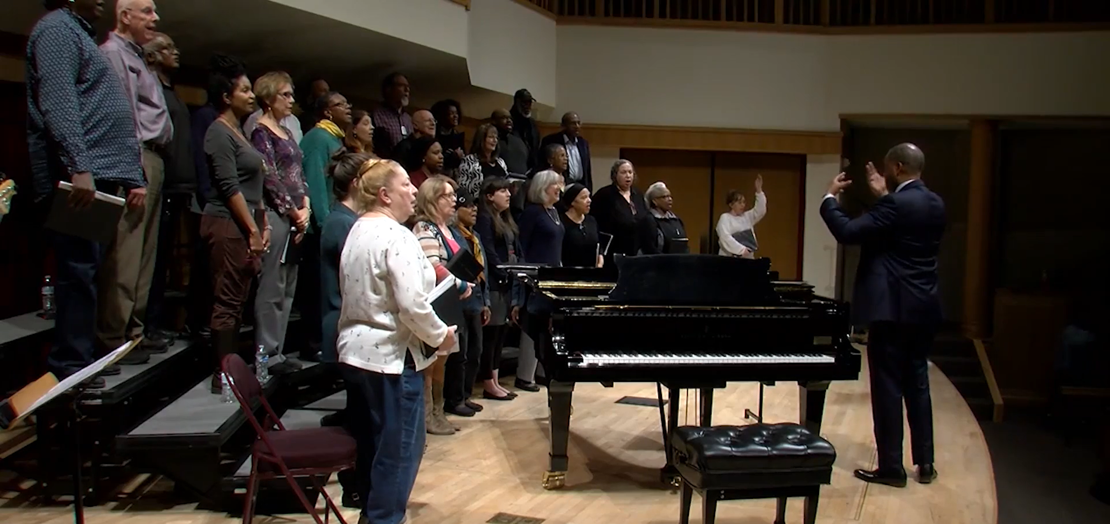 M. Roger Holland II leads a Spirituals Project rehearsal at the University of Denver.