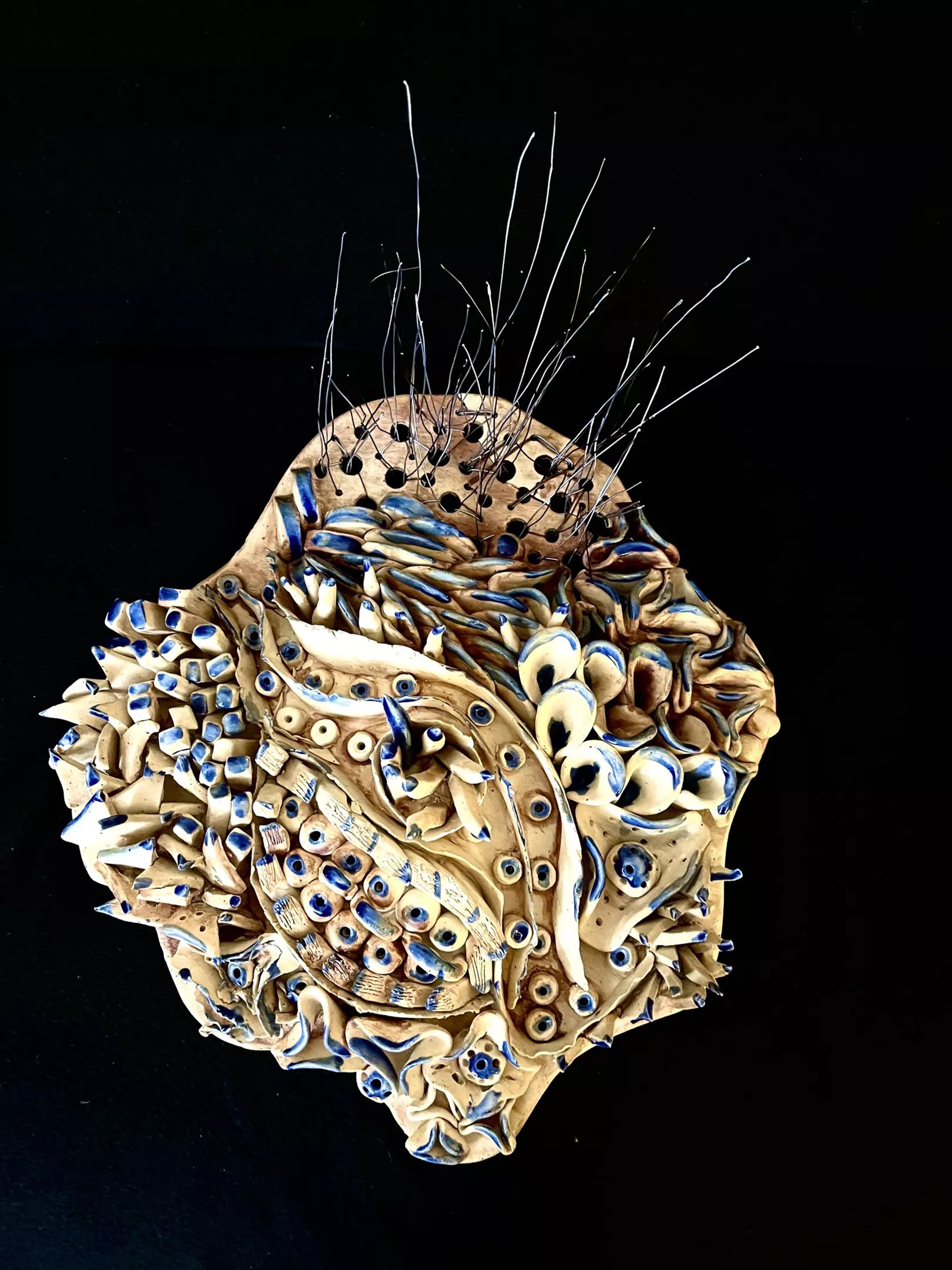 Sculpture by mining engineer Sebum Duzgun composed of clay and natural found objects.