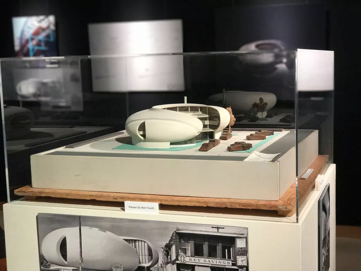 Although “Sculptured House” makes an appearance in The Sculptured Buildings of Charles Deaton – a show dedicated to the late architect in the intimate Sound Gallery of the Museum of Outdoor Arts – the main focus is an equally radical design: the spectacular Community Banks of Colorado building at 3501 South Broadway in Englewood. Just a few blocks from the MOA, the building was originally commissioned by Key Savings and Loan. The concrete-over-steel structure has an extremely complex form; viewed from the south, it’s egg-shaped, while from the north, it’s a two-story spiral curve. The curve envelops steel and glass window walls that follow the building’s form, and as it wraps around itself, the ends define an integral forecourt. The centerpiece of the show is the original plaster model for the bank that’s extremely close to what was actually built – which is not typically the case. Charles Deaton MOA/Collection of Charles Deaton and Nicholas Antonopoulos