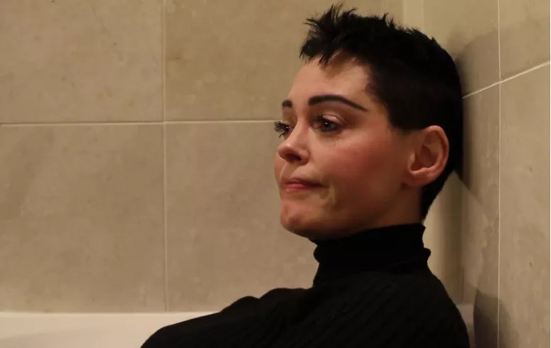 Citizen Rose is strongest at the start, when it juxtaposes McGowan’s present-day anguish with the media coverage of her as a young starlet in the late 1990s and early 2000s. Young Rose obediently perches on late-night talk-show couches, poses on the red carpet and peers out from the covers of magazines in skin-tight dresses, her long, dark hair framing her dimpled chin. The images are superimposed on top of each other, a hazy collage of manufactured sexuality; it’s a period she characterizes as “the selling of me as a bad girl.” What the Hollywood-media complex peddled as a come-hither, brooding gaze, McGowan reveals, is the “vacant” stare of a woman completely detached from her own self.