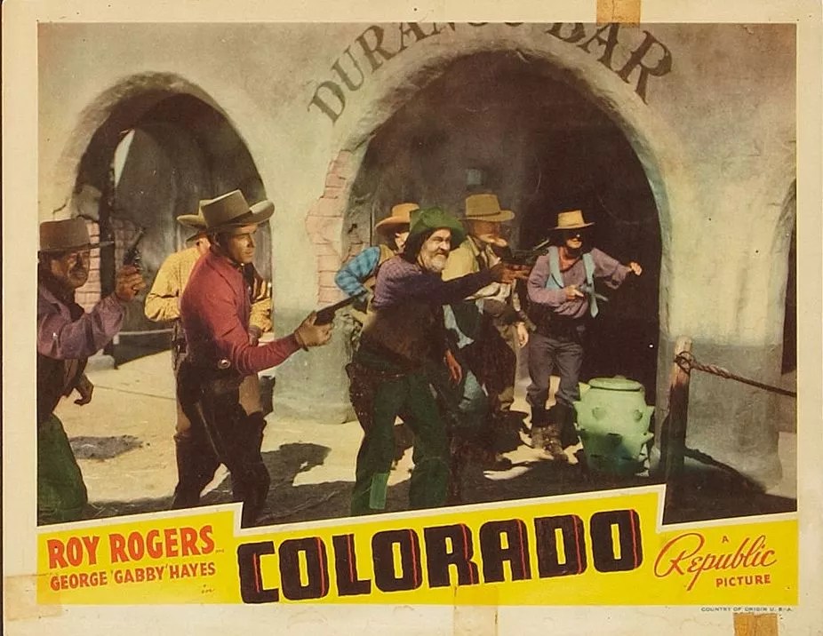 “The cast and crew of Paramount’s ‘Hopalong Cassidy’ Westerns returned once again to Lone Pine’s famous Alabama Hills for this above-average entry in the long-running series. Ma Woods (Sarah Padden) is about to lose her ranch due to the machinations of the not so neighborly George Davidson (Stanley Andrews), who refuses access to the only water in the vicinity. But unbeknownst to both Ma and the always law-abiding Davidson someone else is stoking the fires of the feud for his own greedy reasons. But who? Robbed en route to Ma Woods’ Colorado ranch, Hoppy (William Boyd), Lucky Jenkins (Russell Hayden) and California Carlson (Andy Clyde) manage to settle matters between Davidson and Mrs. Woods but the money to buy the Ma’s cattle seems to have vanished. According to some sources In Old Colorado was co-written by co-star Russell Hayden. The Western marked the debut under that moniker of leading lady Margaret Hayes, who had previously been billed Dana Dale.”
