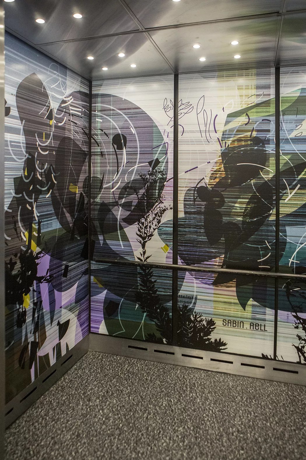 Aell’s public-art installation in the elevator at the McNichols Building.