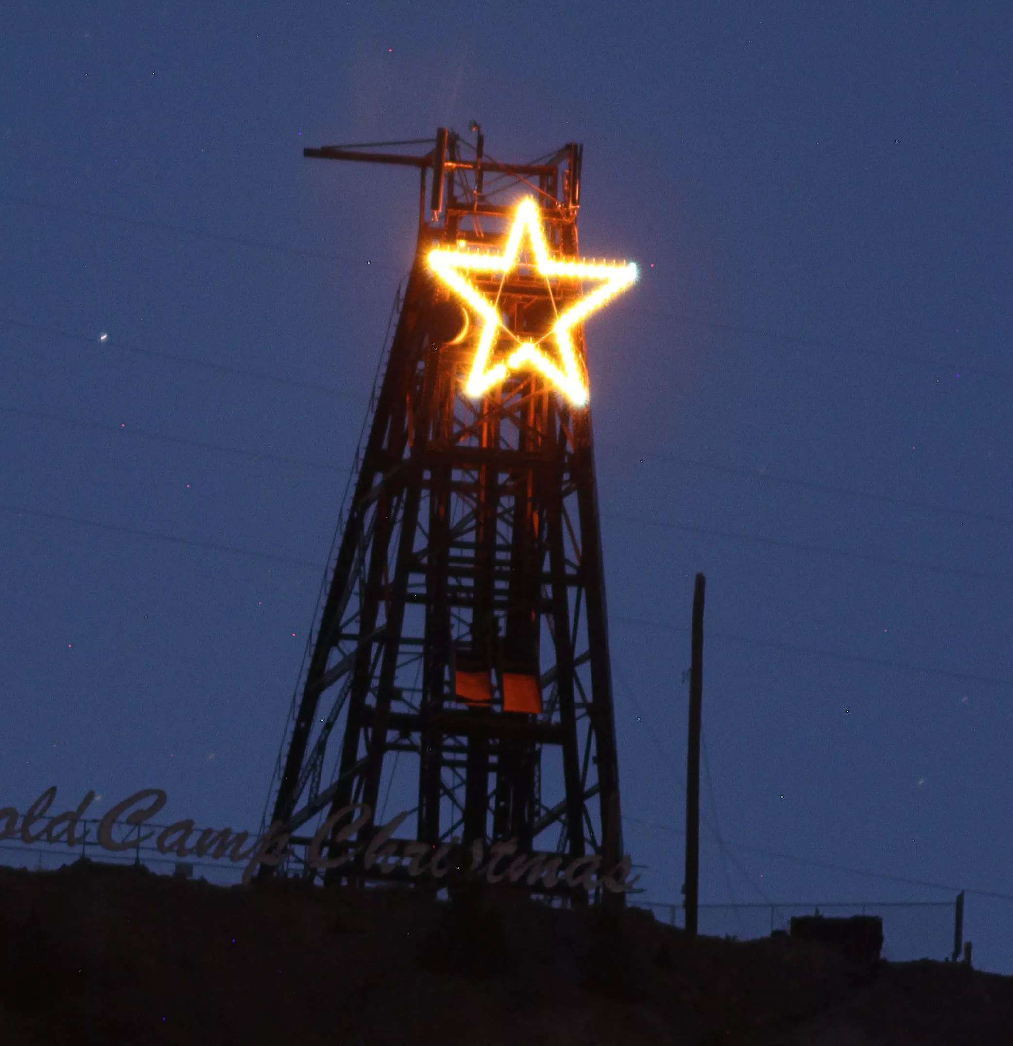 The Holiday Headframe Lighting Tour is usually part of the area’s Gold Camp Christmas celebration that traditionally takes place the second weekend of December and includes a number of events from caroling to a parade. But this year, because of the spike in COVID-19 cases and city ordinances to stay at home, all of the events were canceled. Only the lighting tour carries on because it can be safely done in personal vehicles.