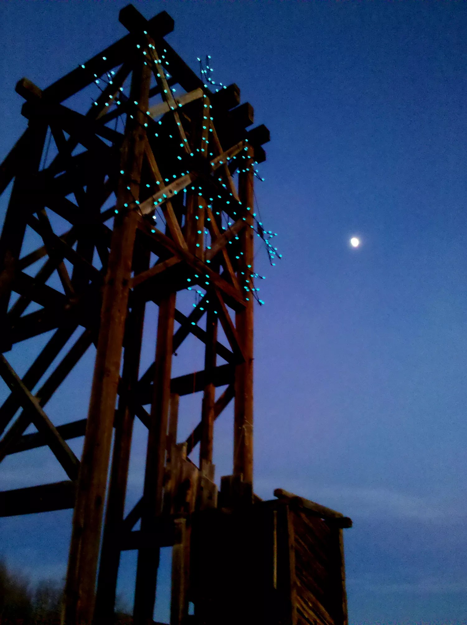 Starting Friday, November 27, through January 1, the headframe ornaments will be shining bright as a reminder that there is light on the horizon.