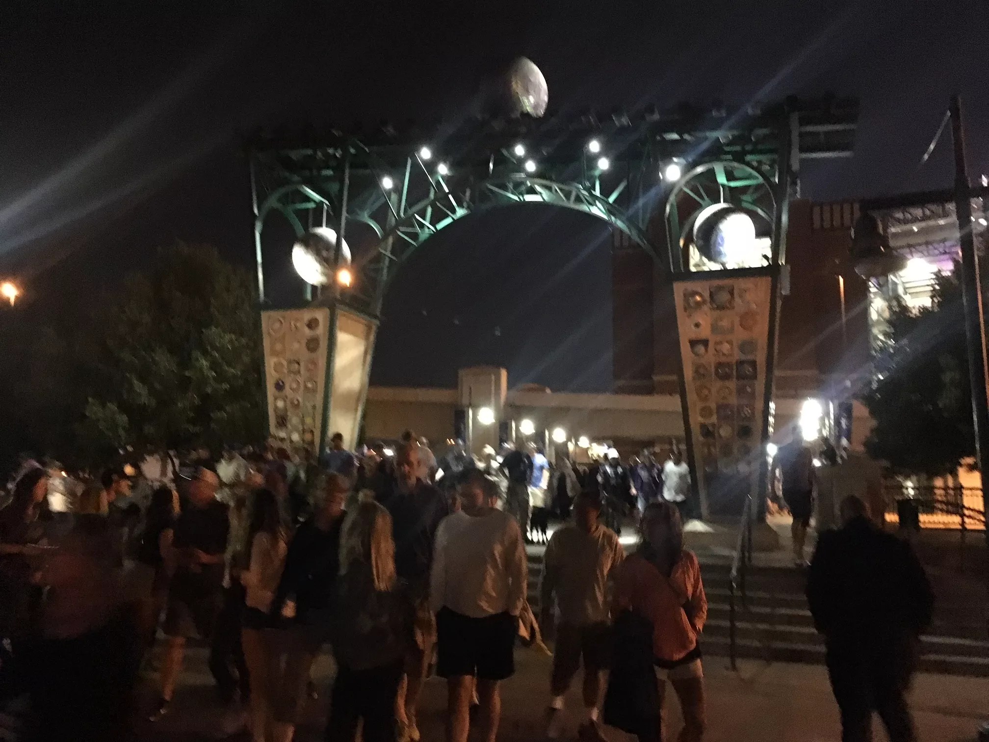 Coors Field crowd passing “The Evolution of the Ball” on July 27.