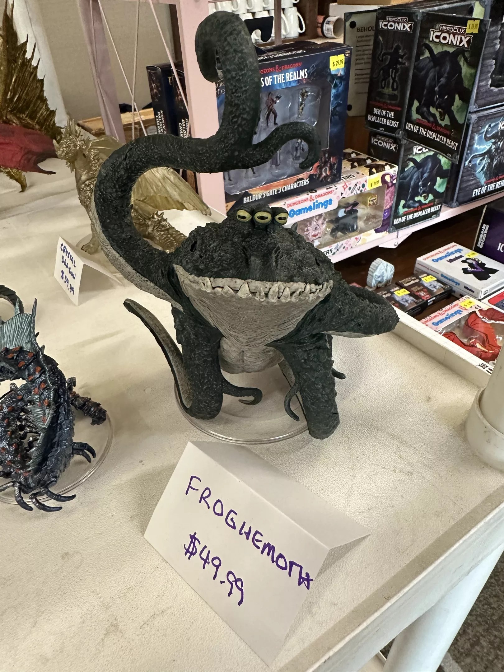 That’s it. Froghemoth. It’s just awesome that this guy has a mega-figure. I mean, look at the challenges he’s faced. Three eyes, bifurcated tentacles for limbs, a crippling anxiety issue stemming from a deep fear of not being loved. And yet, here he is, making it work in the world today, which, as we all know, takes everything we’ve got.