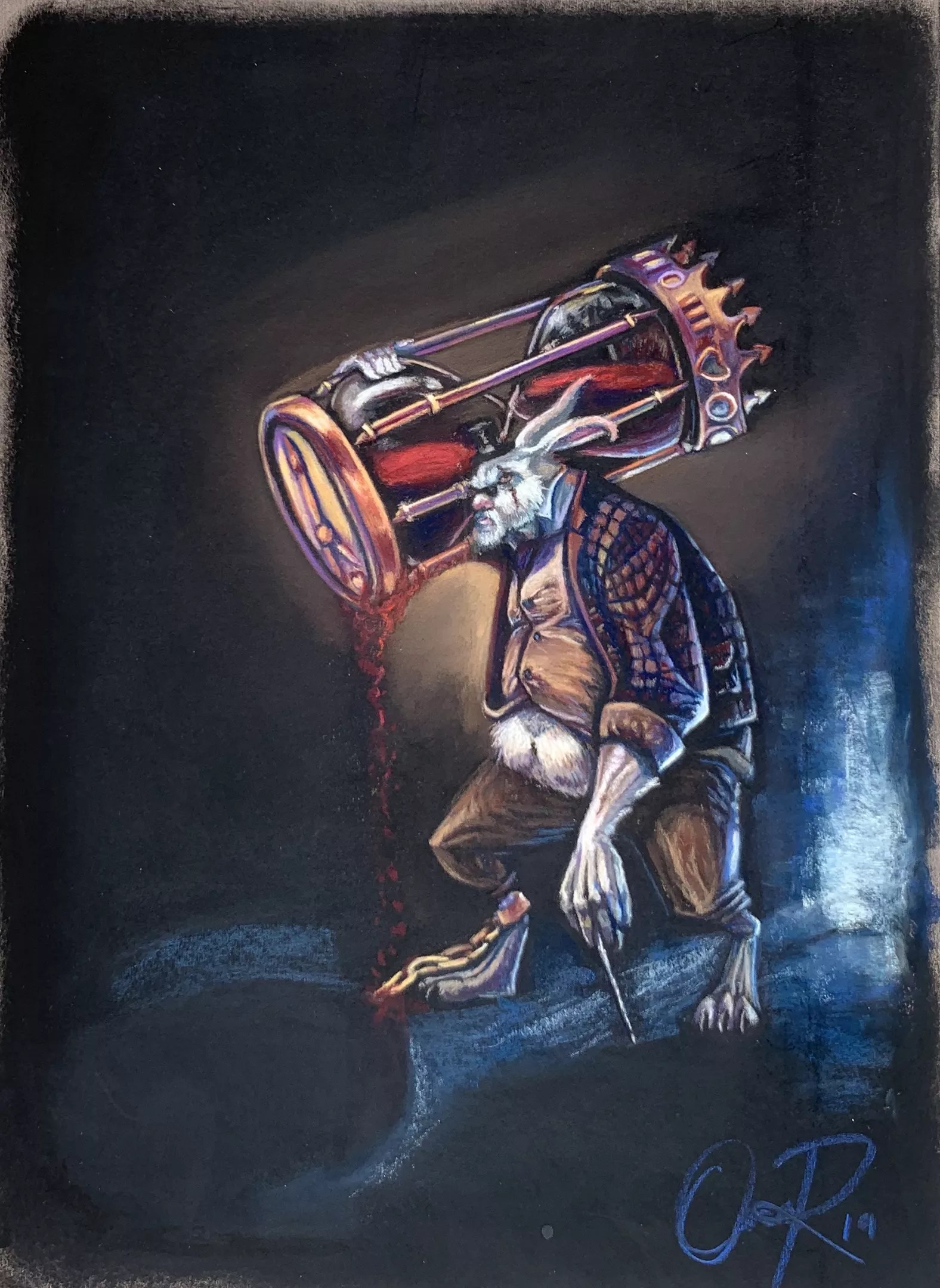 “Mr. Time,” pastel on paper, 2019, by Oscar Rodriguez.