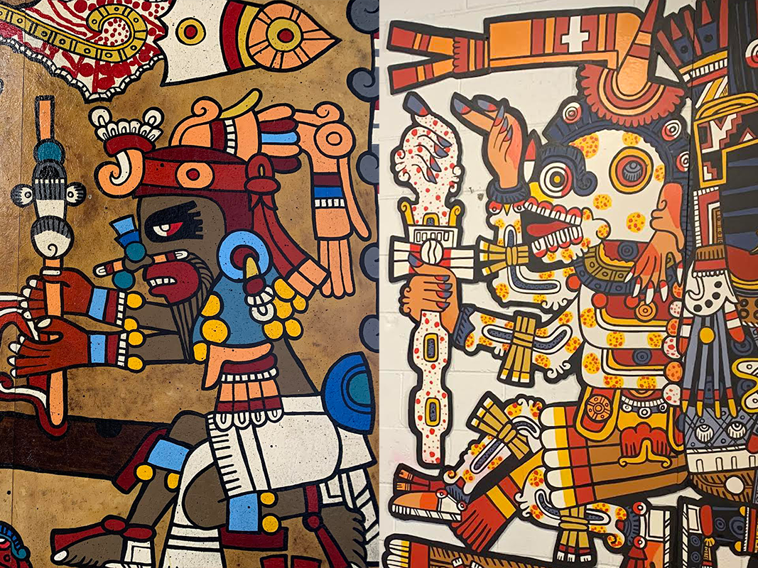 Aztec murals at D3 Arts by Lala and Santiago Jaramillo.