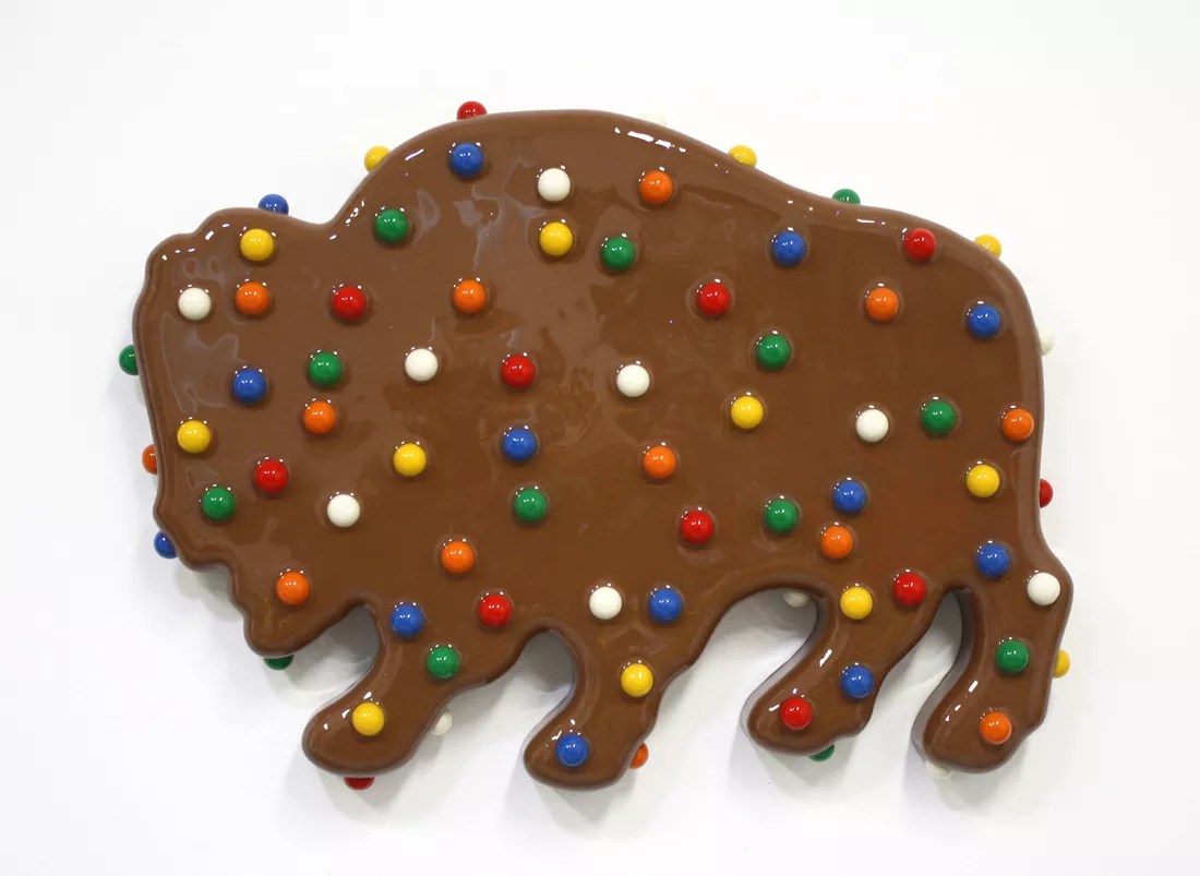Walter Robinson’s “Buffalo Cookie (Chocolate)” at Robischon Gallery.