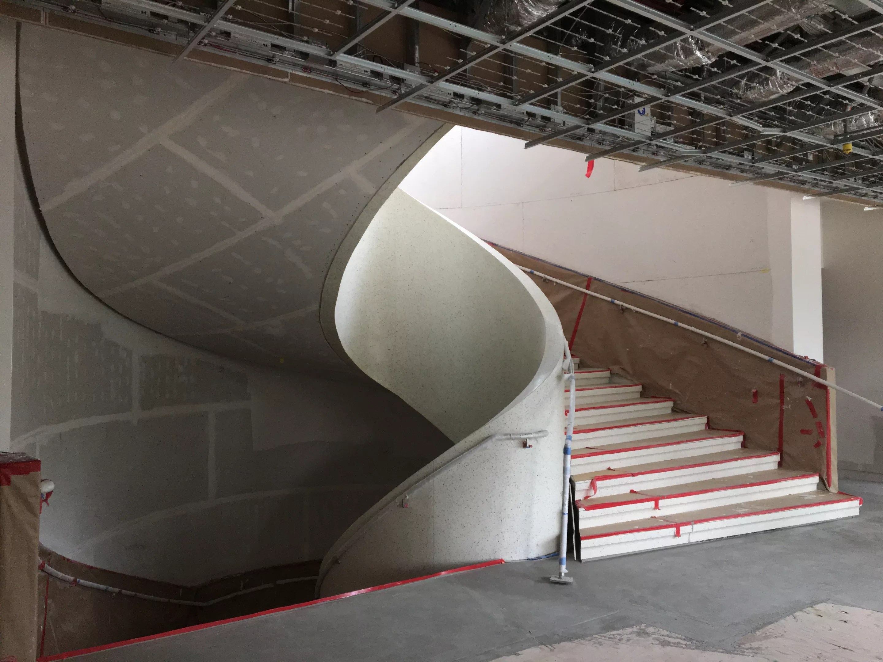 Staircase in the Sie Welcome Center that will lead to the Sturm Grand Pavilion, an event space designed by Fentress Architects and Machado Silvetti.