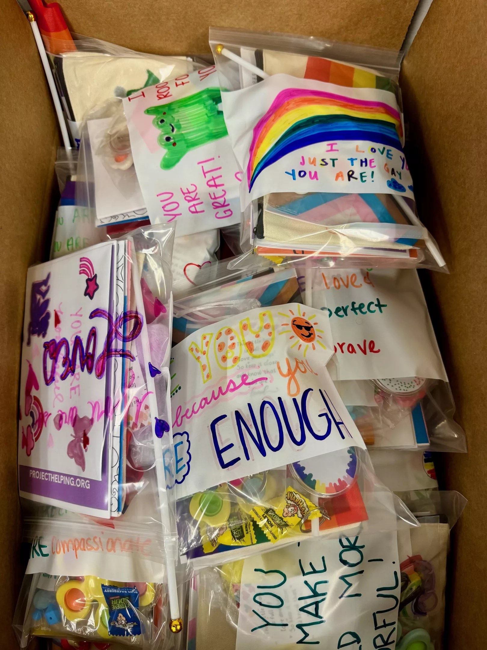 The Kynd Kit program is the centerpiece of Project Helping’s mission to provide direct, personalized resources to people in need. Kits are created in partnership with community organizations, such as Envision : You, a mental health nonprofit that helps LGBTQ+ people, with whom Project Helping collaborated on the LGBTQ+ Kynd Kits.