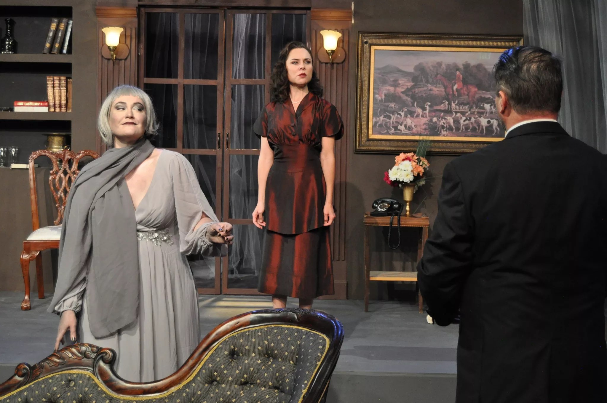 Kelly Uhlenhopp, Miranda Byers and Jeff Jesmer in Blithe Spirit at Firehouse Theater.