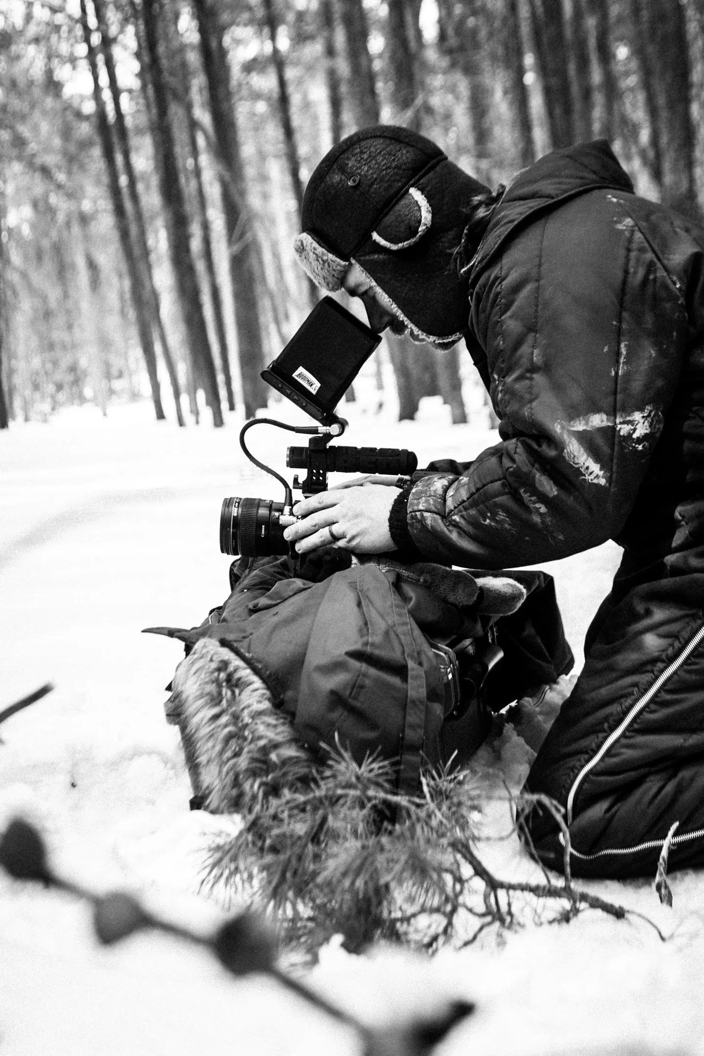 Shooting in the mountains created a plethora of challenges, like limited access to electricity, minimal gear usage, and batteries draining faster in the cold. The only restroom was a two-person outhouse with no door that the team took to calling “the epic poop situation.” At night they slept huddled in a cabin, though not the one seen in the film.
