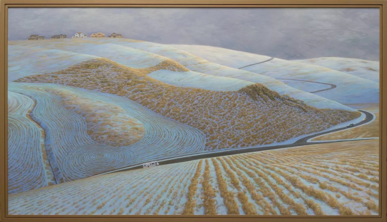 Robischon Gallery brings a quartet of fresh new exhibitions inspired by the environment to the space this week. First up is a set of landscapes that only Chuck Forsman could have painted: wide-screen views marked by visual depth, winding roads, shapely curves, natural textures and intense cloudscapes. Karen Kitchel’s Palindrome goes the other way, peering underfoot into diptychs of tangled grasses and seasonal ground detritus, while Zoey Frank shows backyard views chopped up on multiple adjacent panels that visualize the passage of changing lighting. Finally, in a nod to Month of Photography 2025, the gallery shows Gary Emrich’s amorphous archival digital inkjet prints blending commercial views of natural settings.