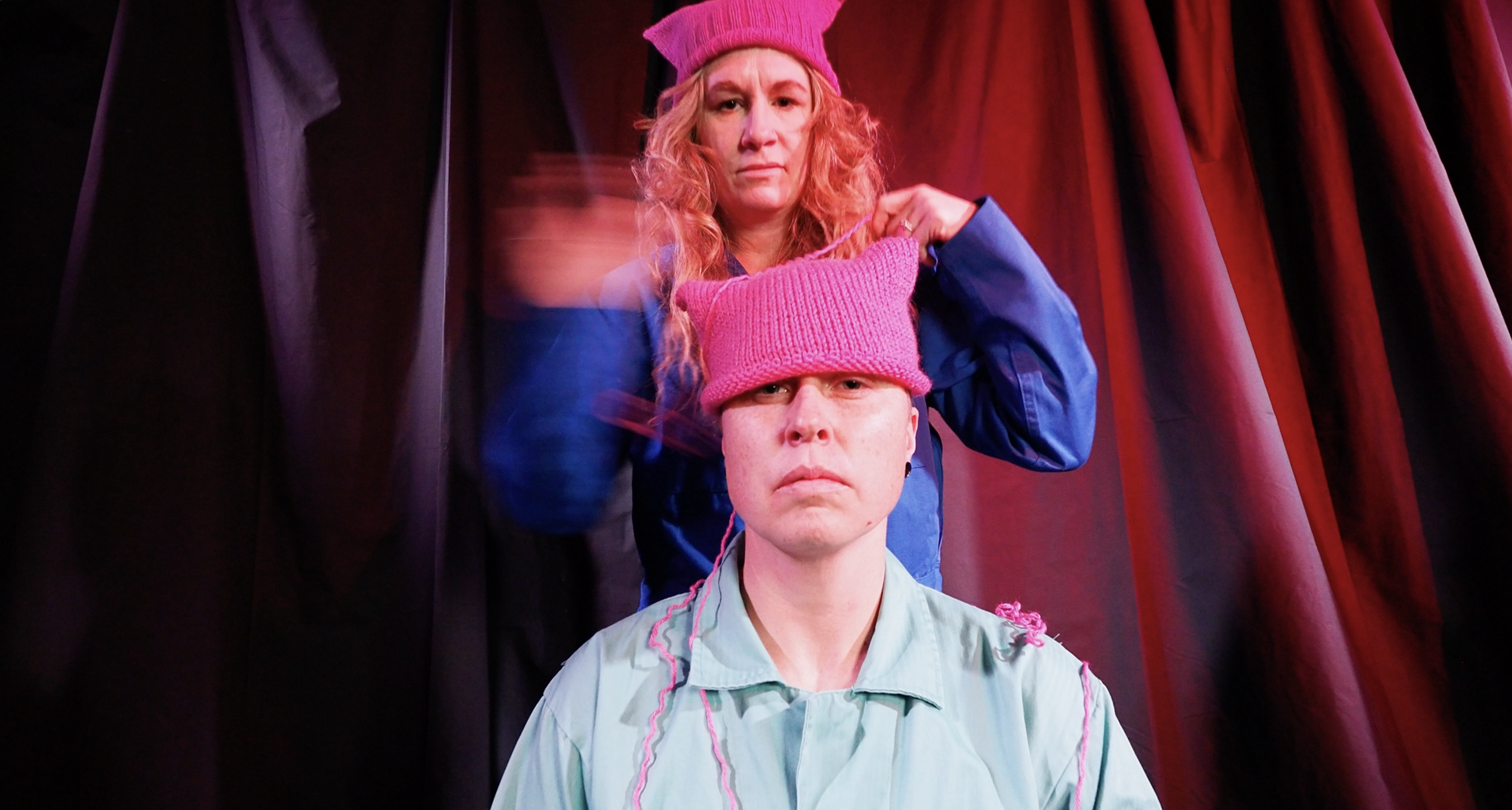 Breaking Boundaries: The Future of Creativity A video performance still by Kenzie Sitterud for Happy Sad at the Firehouse Art Center. Kenzie Sitterud