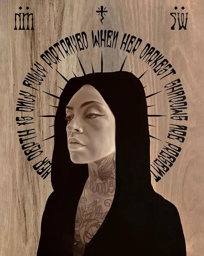 Jody Herrera and Frank Blazquez, “Her Depth is only fully portrayed when her darkest shadows are present,” oil painting on wood.