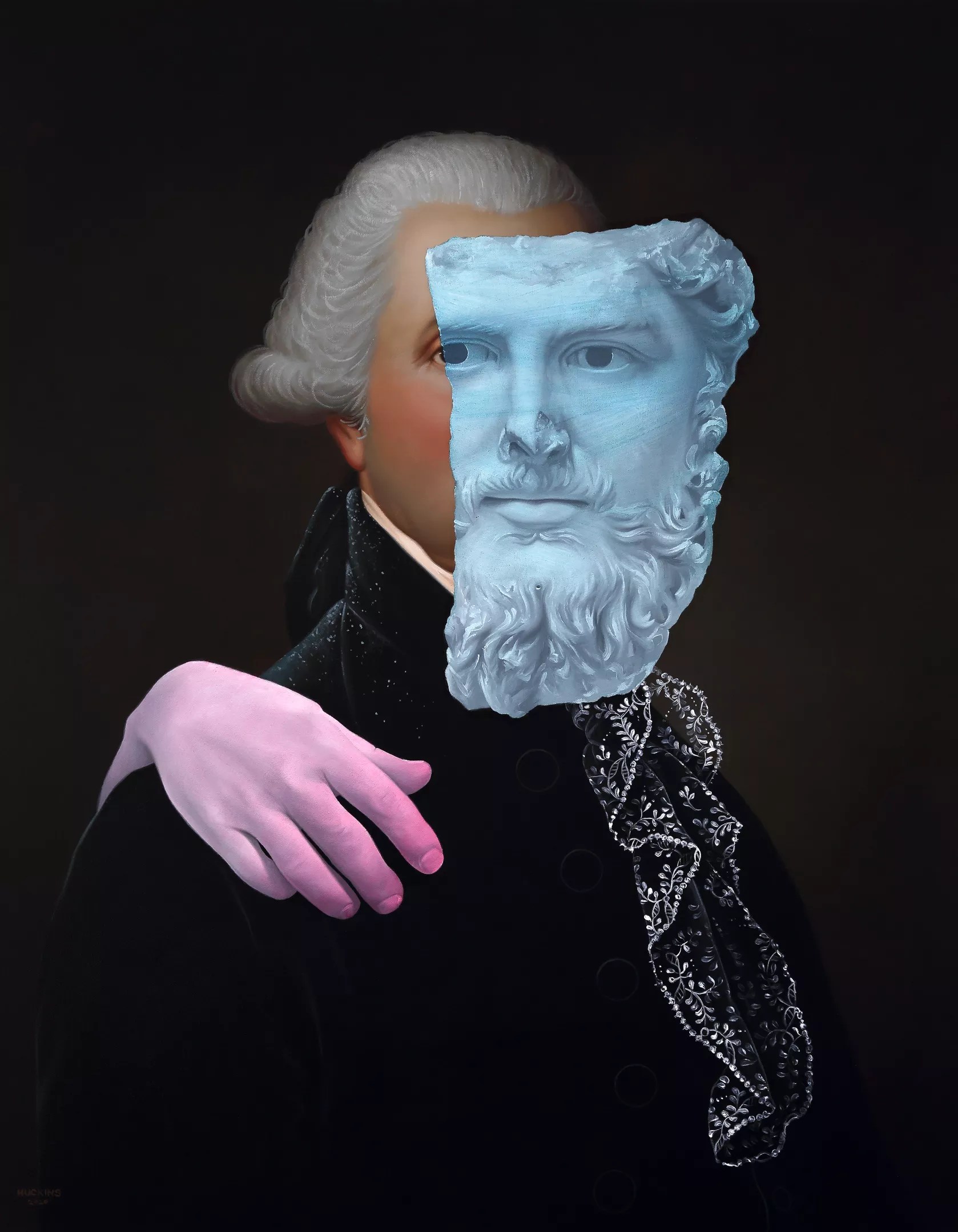 Shawn Huckins, “(George Washington),” 2020, acrylic on canvas.