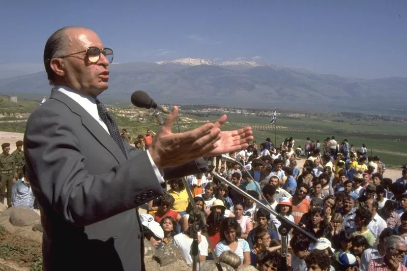 Begin himself was imprisoned and put into solitary confinement in a concentration camp in Russia and charged with the thought crime of “Zionism” for advocating that Jews move from Europe to then-British-controlled Palestine. After he was freed in the early ’40s, he moved to Palestine to be with his wife, who had relocated there while he was imprisoned. Through the mid-’40s, he led a violent campaign to overthrow British colonial rule – which ended, in part, after the Irgun forces he commanded blew up the King David Hotel, the colonial government’s headquarters; ninety-plus people were killed in the 1946 attack. Many labeled him a terrorist and fascist; others considered him a hero fighting for Jewish survival.