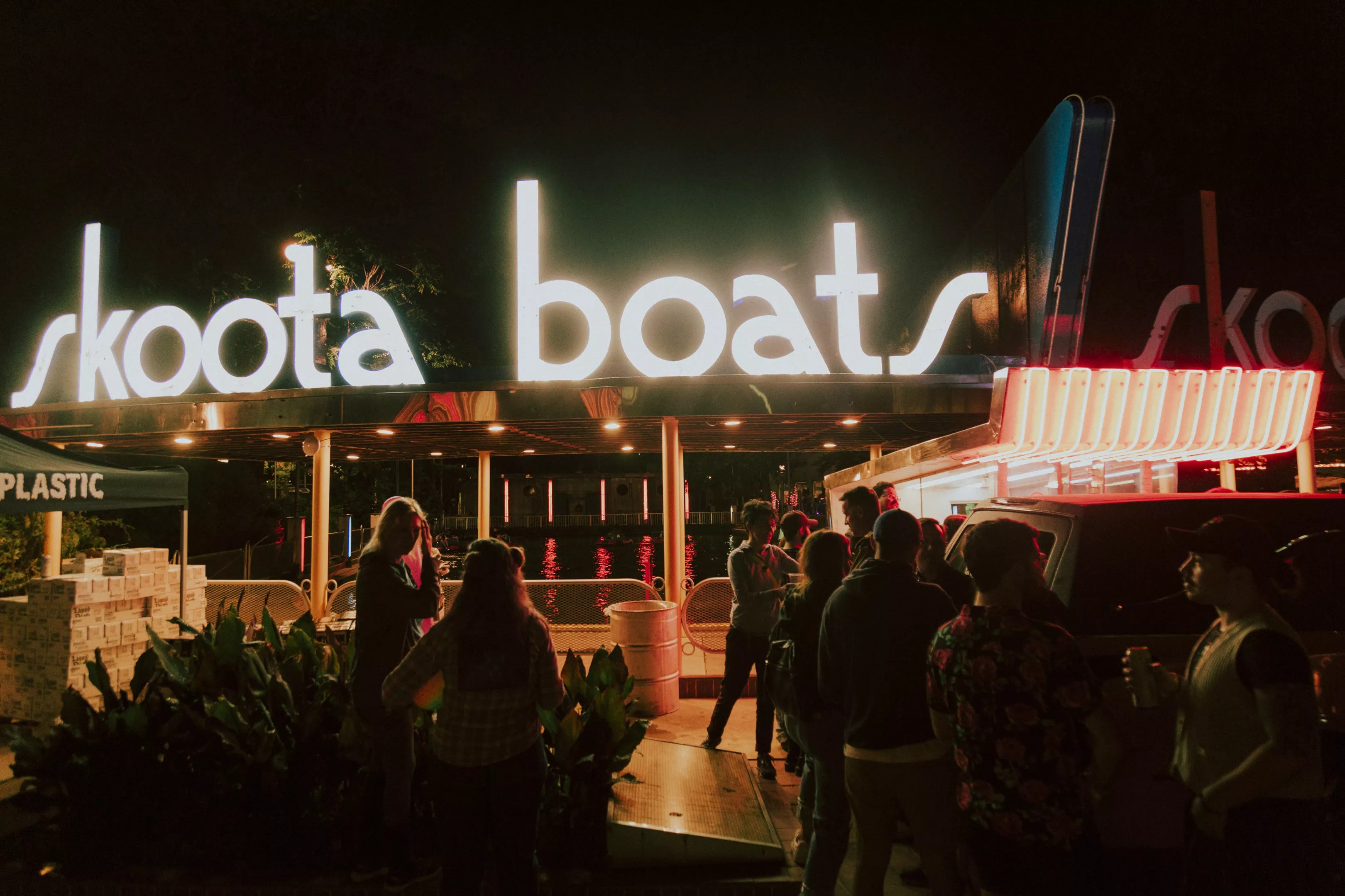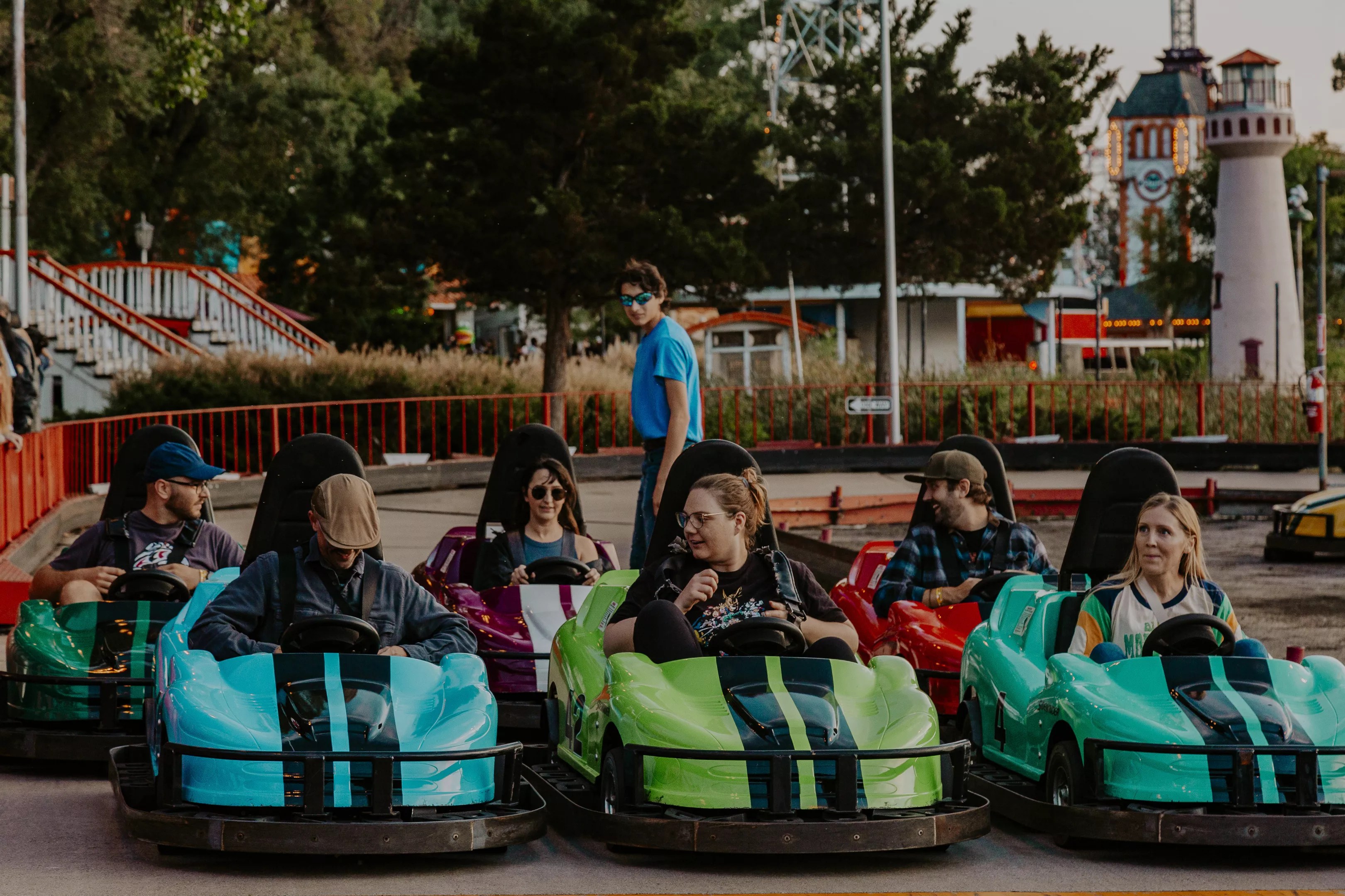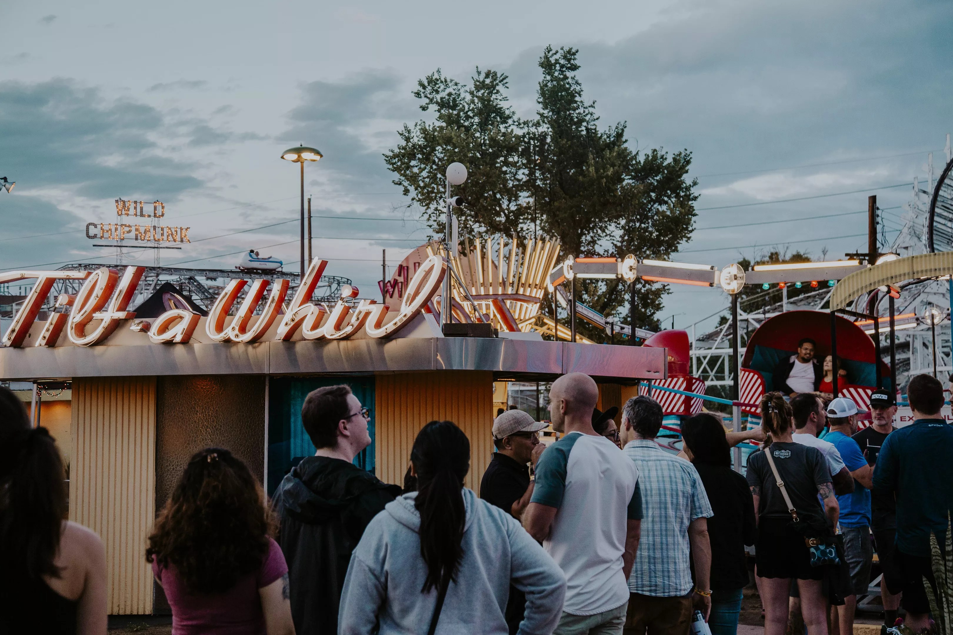 Attendees line up for Skoota Boats at Lakeside Amusement Park