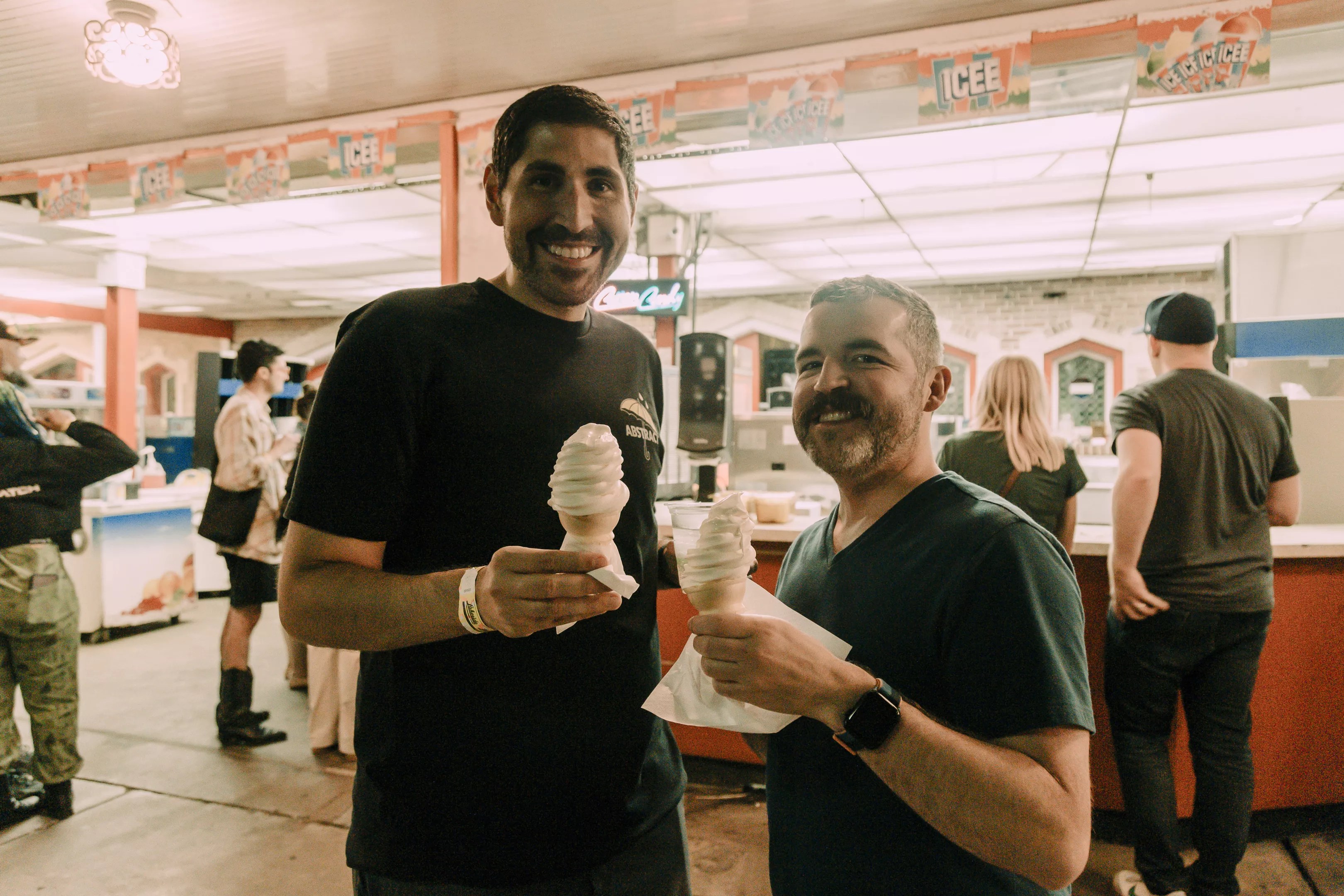 Summer Scream attendees enjoying ice cream outside of the food court at Lakeside Amusement Park