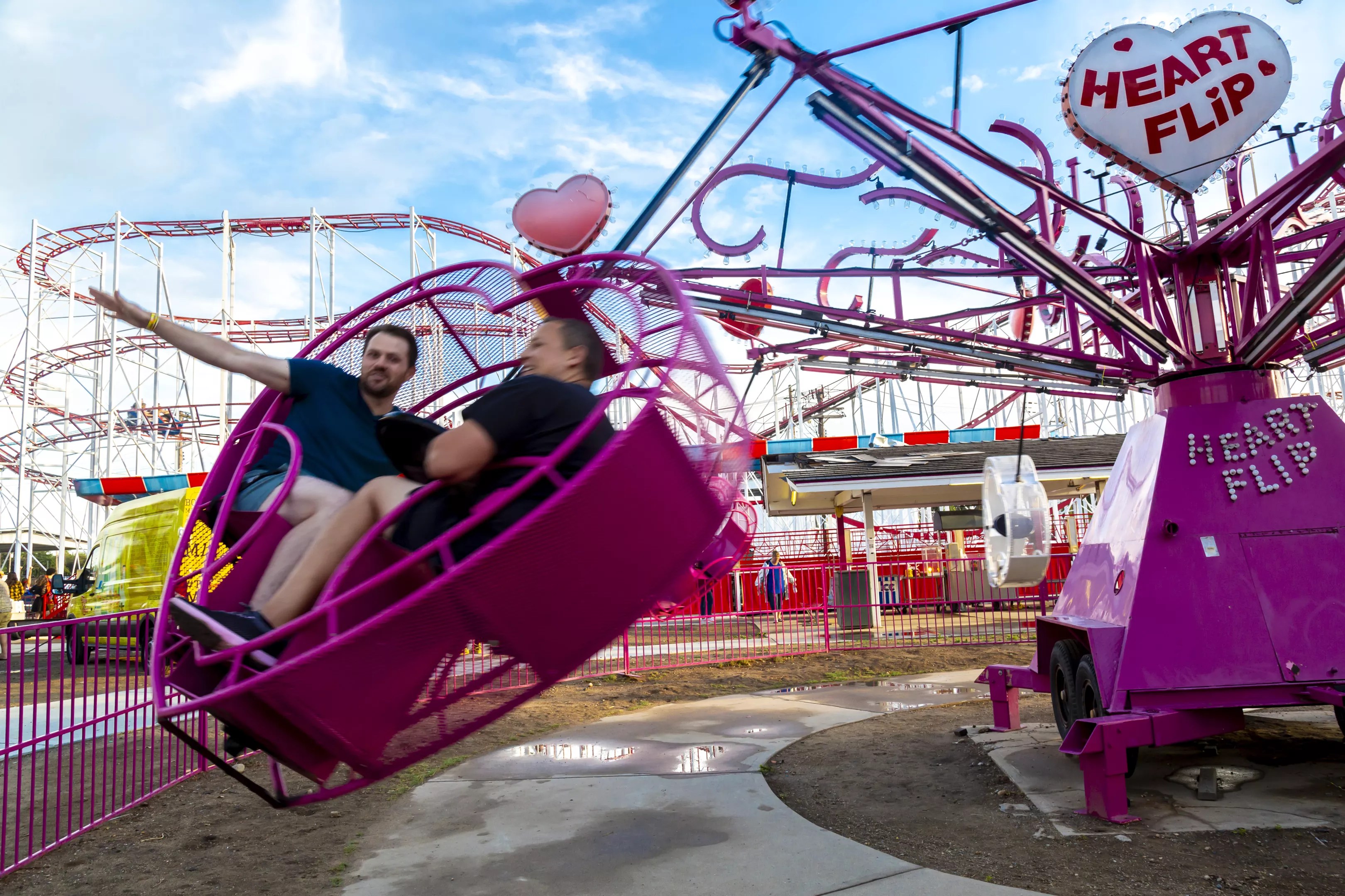 Summer Scream attendees line up to ride the Tilt-a-Whirl.