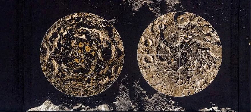 Clarissa Tossin’s “The 8th Continent” (detail), 2021. Digital loom jacquard tapestries with metallic thread.