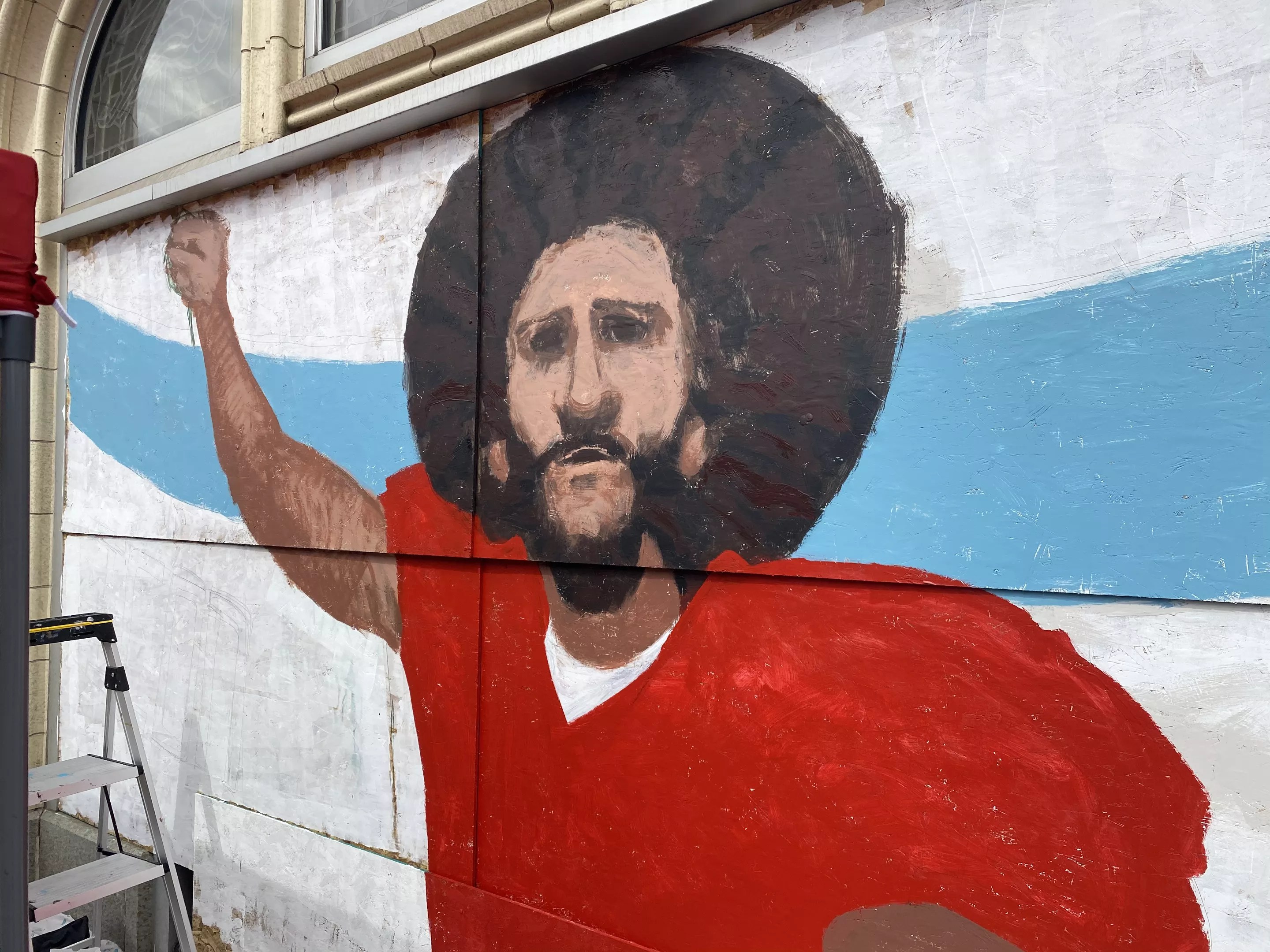 A mural of civil-rights activist and quarterback Colin Kaepernick.