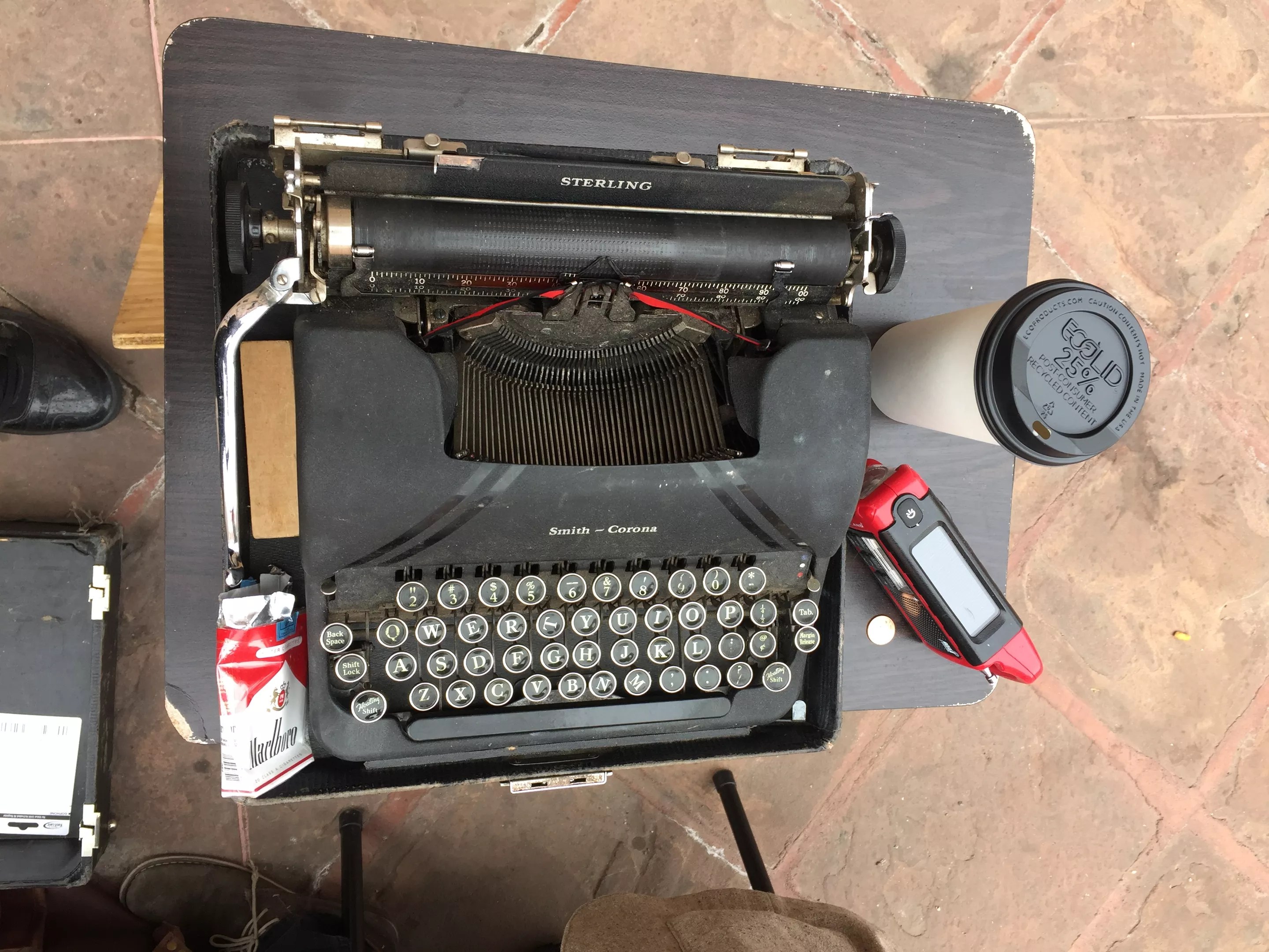 One of Kingsford’s four typewriters, along with his favorite accessory: cigarettes.