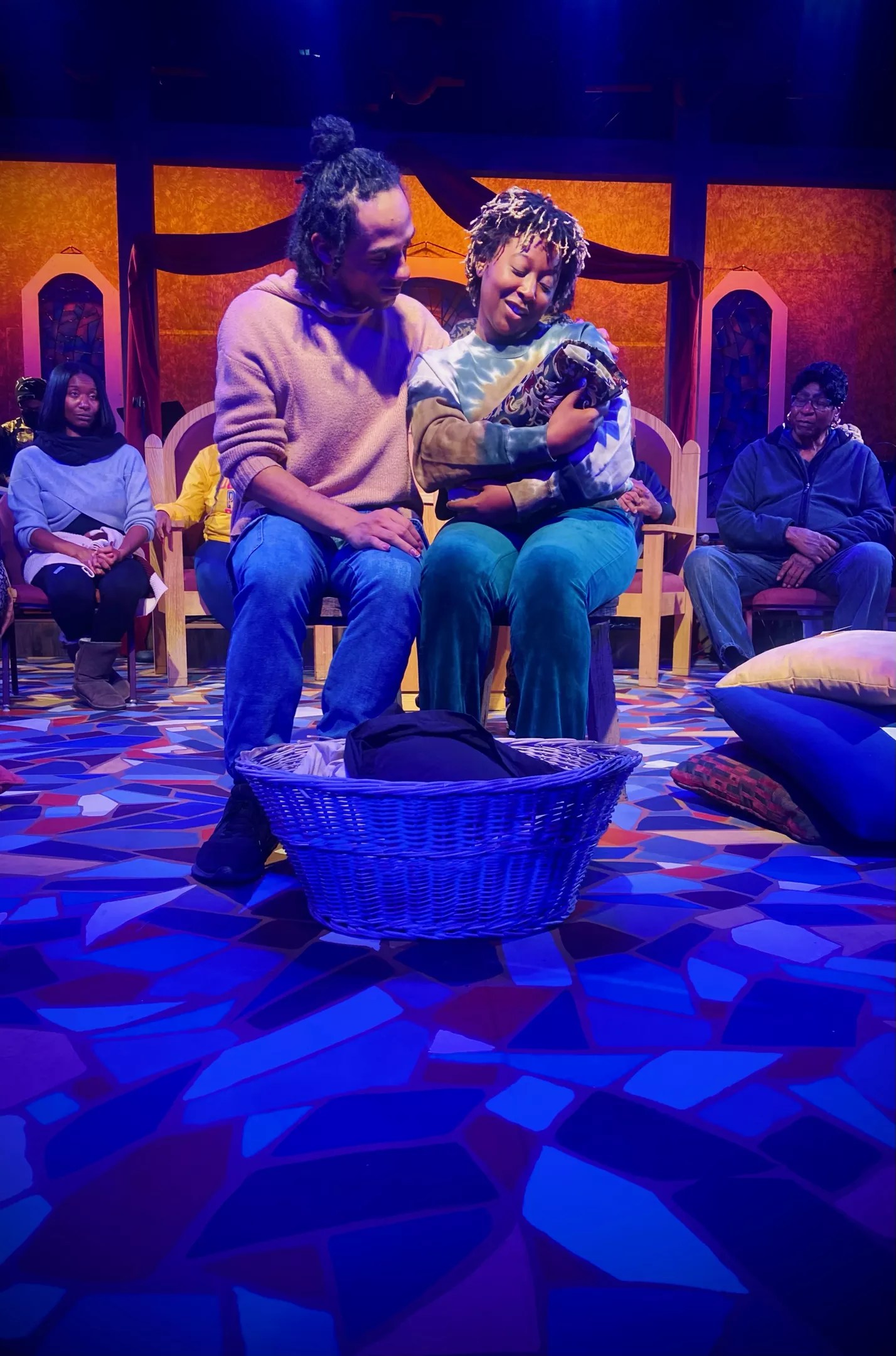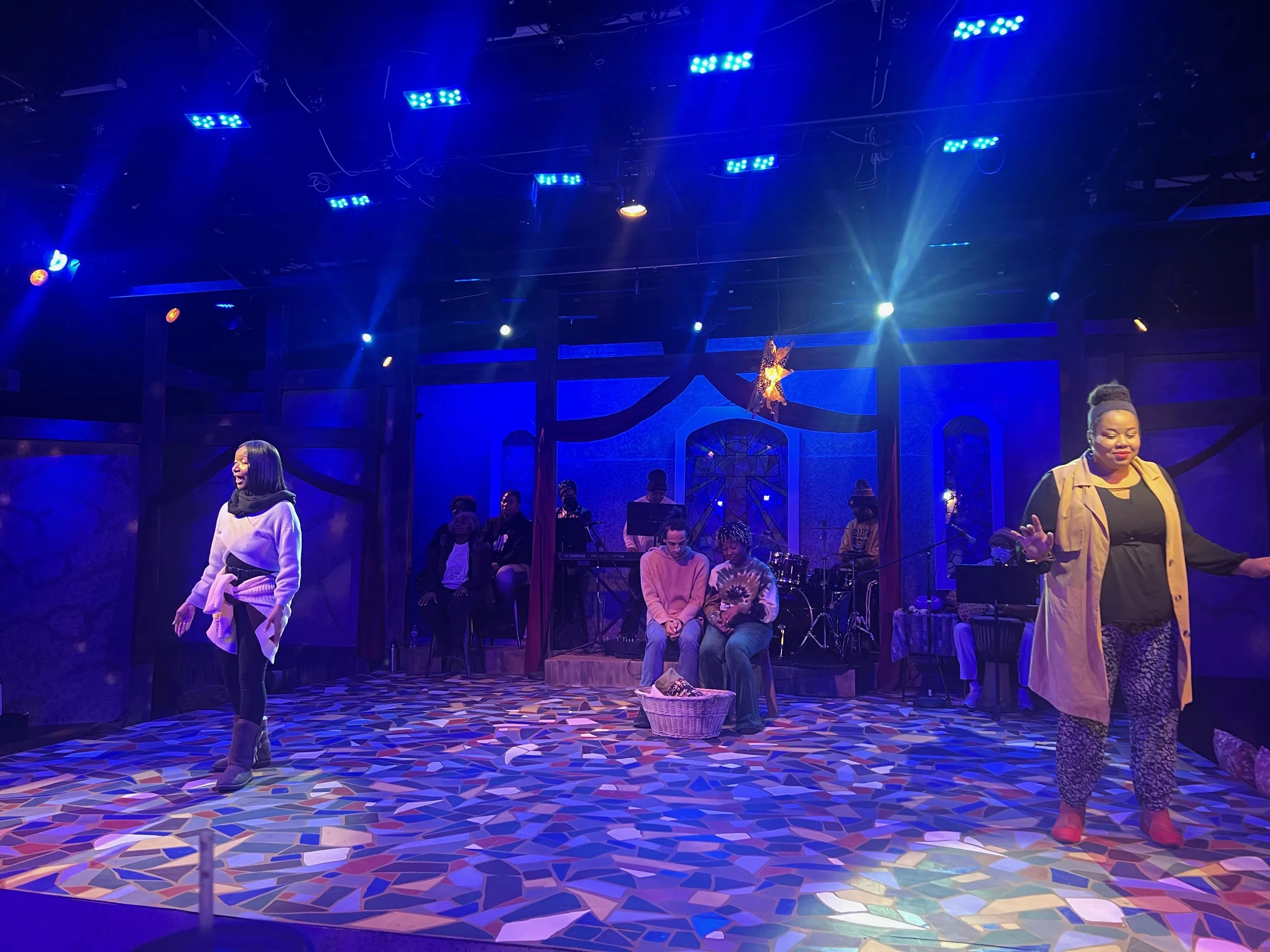 Young, who founded DEI outreach organization IDEAs Stages, was selected by Vintage Theatre’s artistic director, Bernie Cardell, in mid-August to direct Black Nativity as part of the company’s New Directors Program for emerging directors. She envisioned a production that would blend gospel music, African beats and a modern retelling of the Nativity story, reflective of contemporary issues in the African-American community. The cast, which included a mix of professional actors and amateur community members, was seen as a strength.