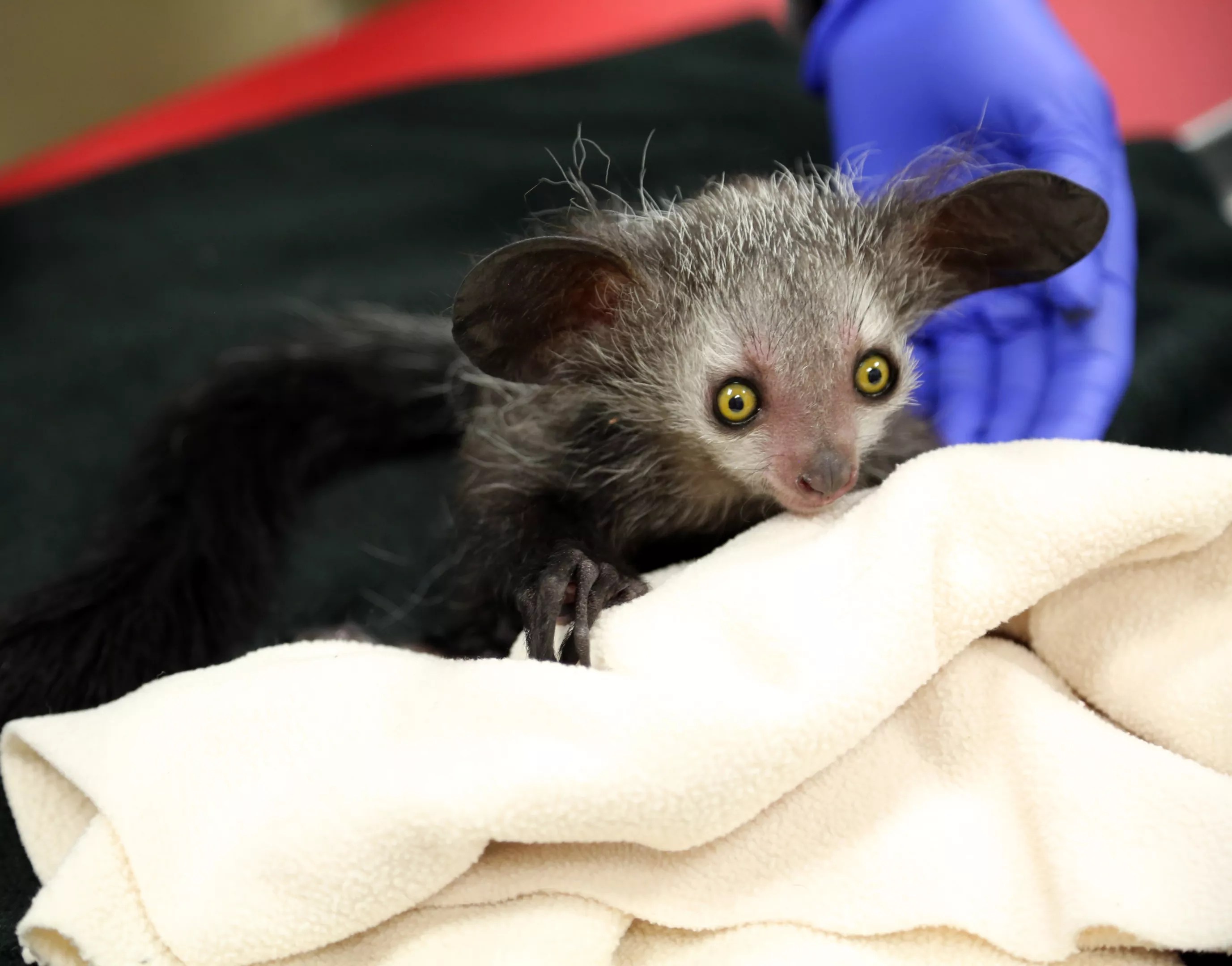 “They are one of the most distinctive-looking animals on the planet due to a number of unique adaptations, including coarse dark hair, long bushy tails, rodent-like teeth, piercing eyes and skeletal hands that feature extra-long middle fingers with hooked claws,” according to the Denver Zoo. “Aye-ayes are born weighing just a few ounces and reach up to five pounds as adults.”