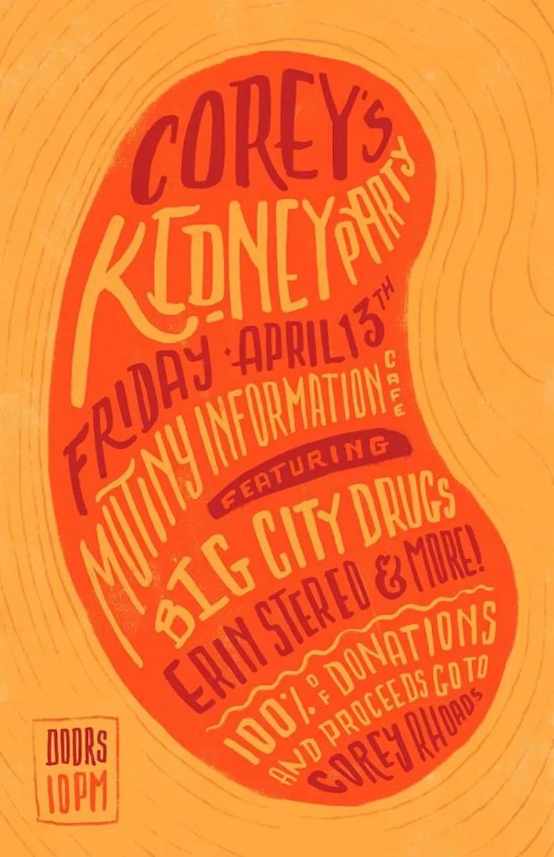 Corey’s Kidney Party Featuring Big City Drugs and DJ Erin Stereo