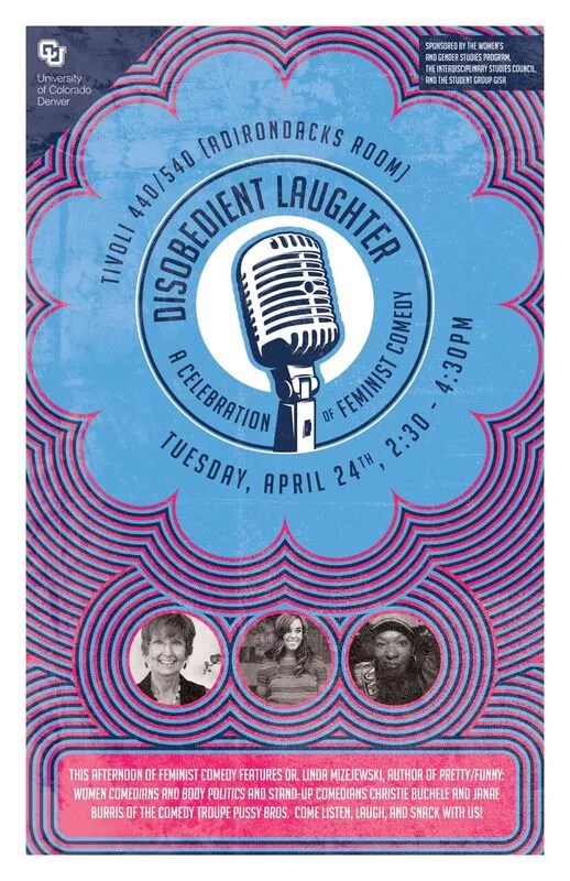 Join Linda Mizejewski, professor of Women and Gender Studies at Ohio State University and author of Pretty/Funny: Women Comedians and Body Politics, for an afternoon of discussion and standup, the latter courtesy of additional guests Christie Buchele and Janae Burris from the Denver-based comedy troupe Pussy Bros. There will be refreshments following the event, along with a Q&A and a gratifying sense of awareness and empowerment.