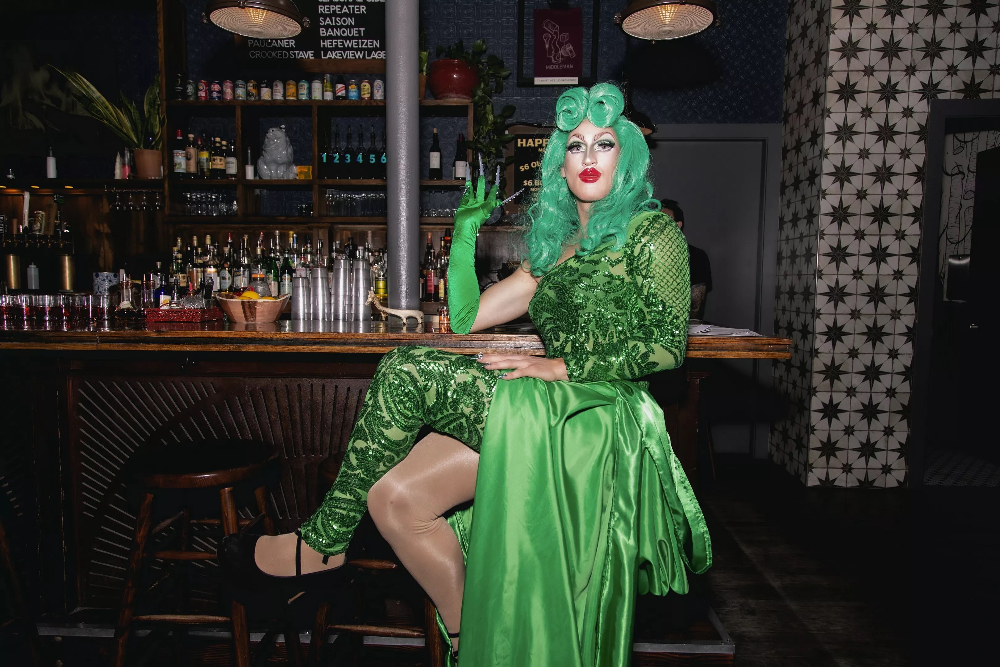Tucker L’Whor’s favorite part of the murder-mystery parties so far has been completely overturning the usual dynamic between the audience and performers. “In the stereotypical drag show, the performance comes from the artist. The artist brings their artistry, they perform for people, people tip them and they cycle out. With this model, the performance comes from the audience,” she explains.