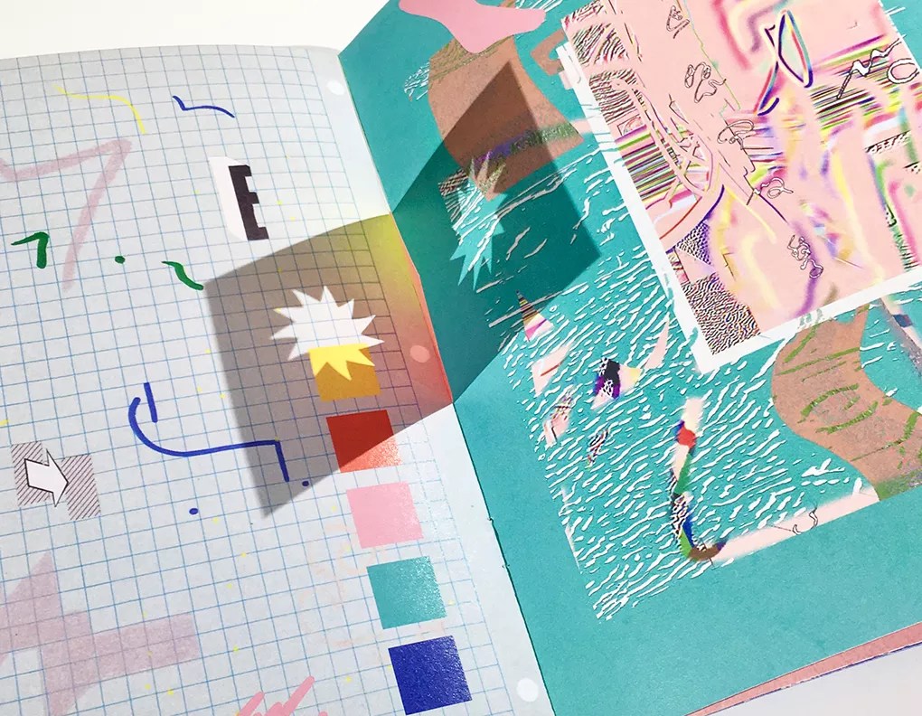 But more than anything, the wares from Extra Vitamins are just plain cool, swapping company logos for indecipherable text markings, anti-Trump slogans and fun imagery making connections between spirals drawn on rock walls eons ago and today’s online emoji shorthand. “We’re both interested in asemic writing – writing that’s sort of like what scat is to lyrics and language,” explains Warfield. “We try to create a new world or universe through a combination of different symbols. Some are from pop culture, some are altered, and some feel alien or childlike.” Detail from a new Extra Vitamins zine.