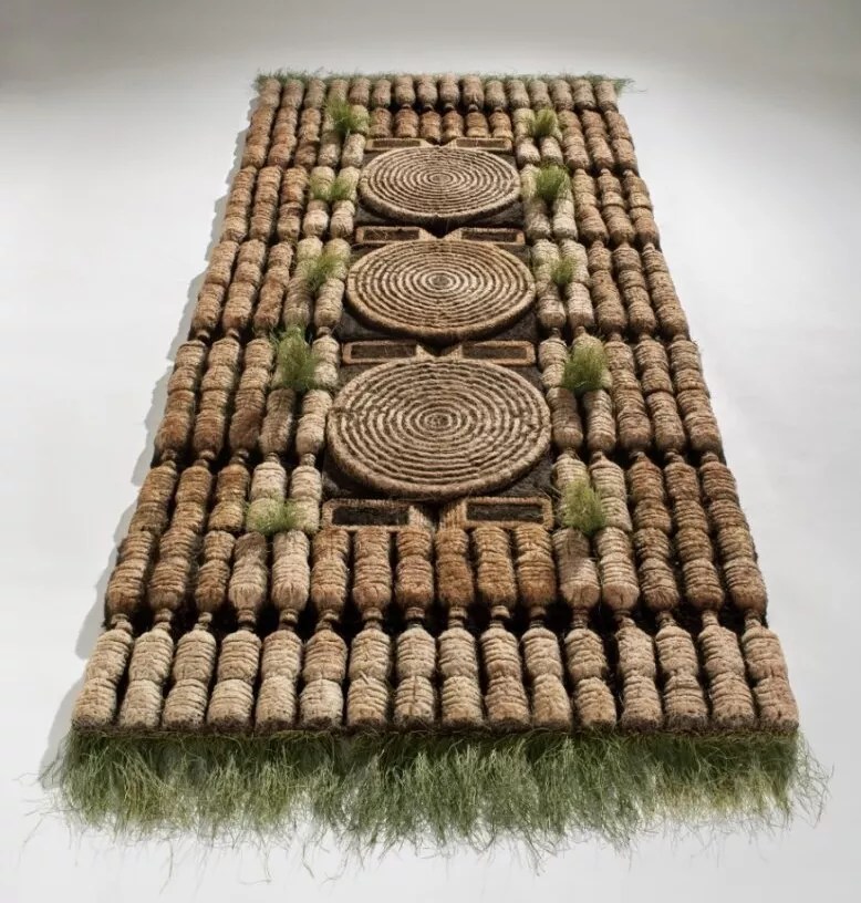 Susan Rubin, Snapshots Susan Goethel Campbell, “Flint Carpet,” earth, roots, grass grown in plastic water bottles. Susan Goethel Campbell